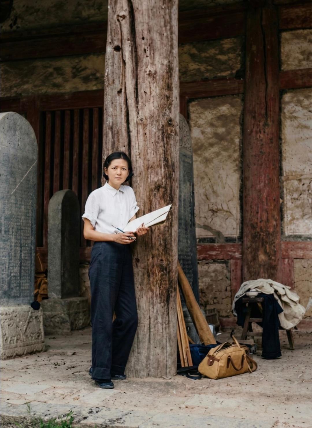 林徽因考察古建筑黑白照片彩色还原真实样子…