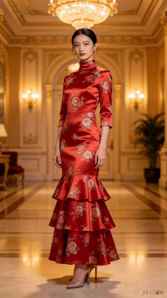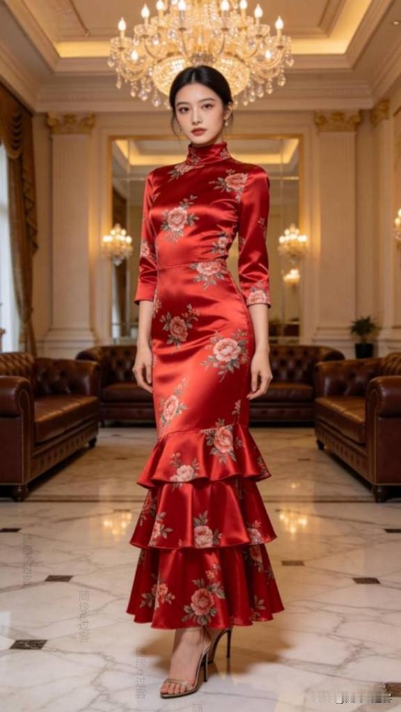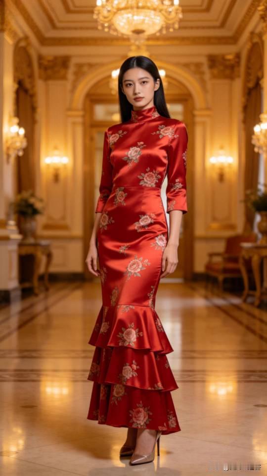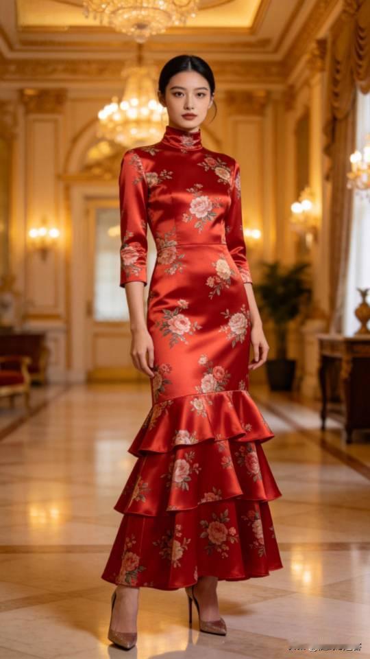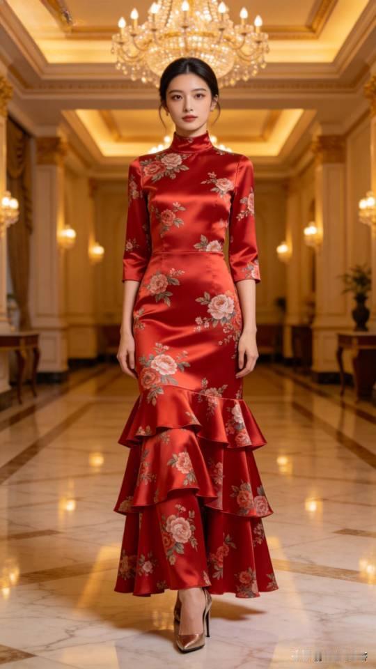 优雅的红裙女子,尽显东方韵味!连衣长裙 美女壁纸