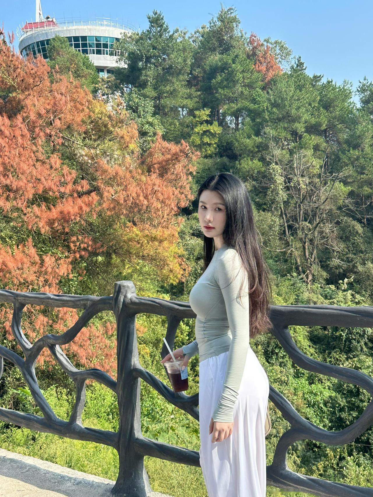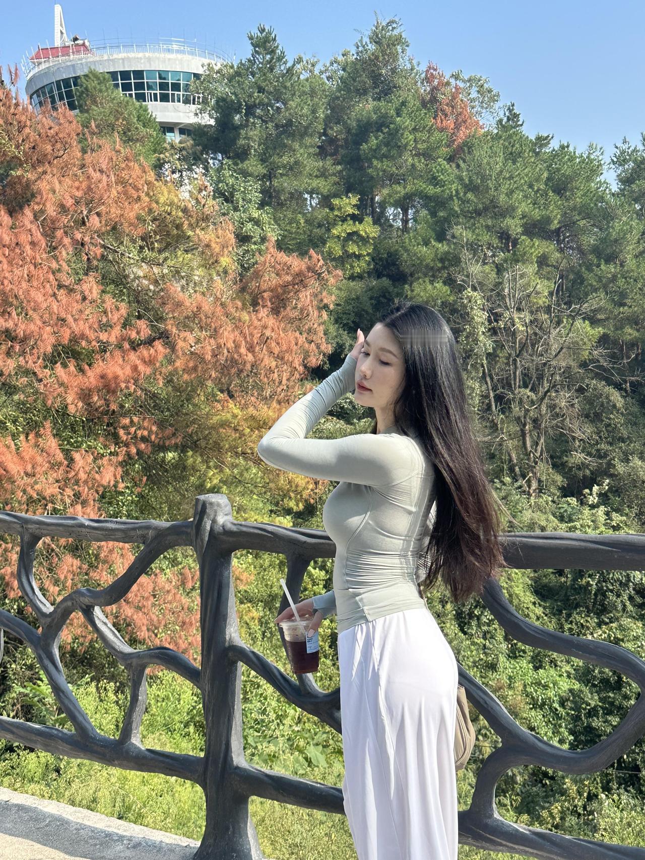 山行闲吟 文/朱珠 今儿没事逛山坳,手里冰咖冒凉泡。 先到高台凭栏靠,树色红黄入眼闹。 左边松针绿如潮,右边霜叶红似烧。 转去山边路一条,柏油干净叶儿飘。 风掀衣角轻如羽,步踏秋光慢似猫。 木栈蜿蜒绕山腰,树影筛光碎金摇。 偶听鸟啼深林里,脚步轻移怕惊巢。 登顶抬眸望云涛,屋舍点点在山坳。 一口冰咖入喉爽,俗事烦忧全抛掉。 山风拂面心自宽,管它明日事多少。 原创诗词 情感