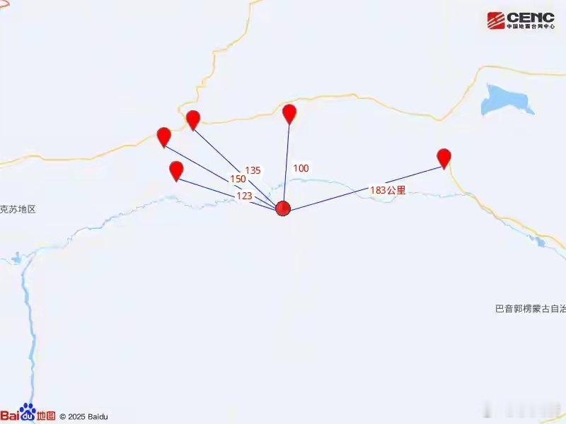 新疆尉犁5.1级地震震中距轮台县100公里、距沙雅县123公里、距库车市135公里、距新和县150公里、距尉犁县183公里,距铁门关市166公里,距巴音郭楞蒙古自治州192公里,距乌鲁木齐市432公里。震中5公里范围内平均海拔约934米。
