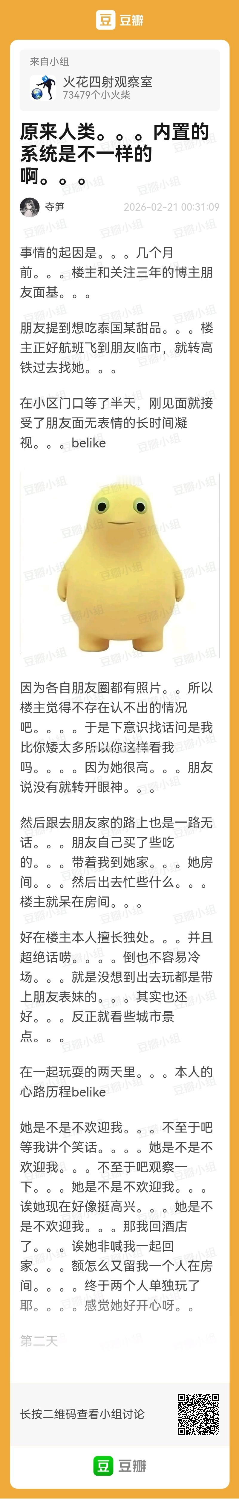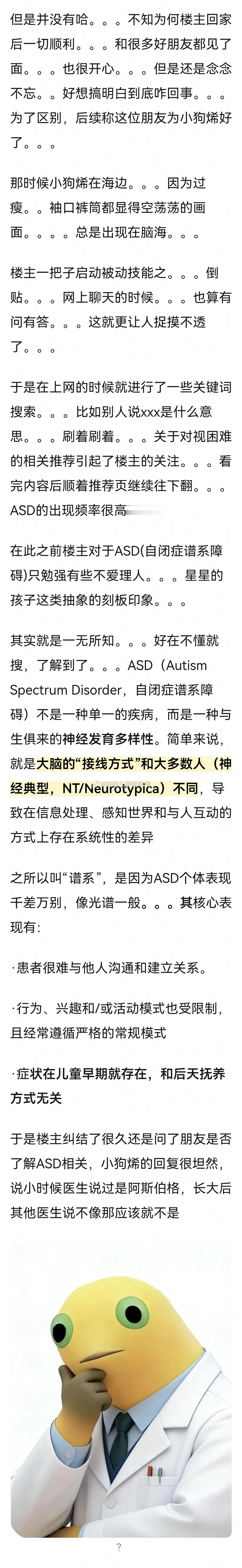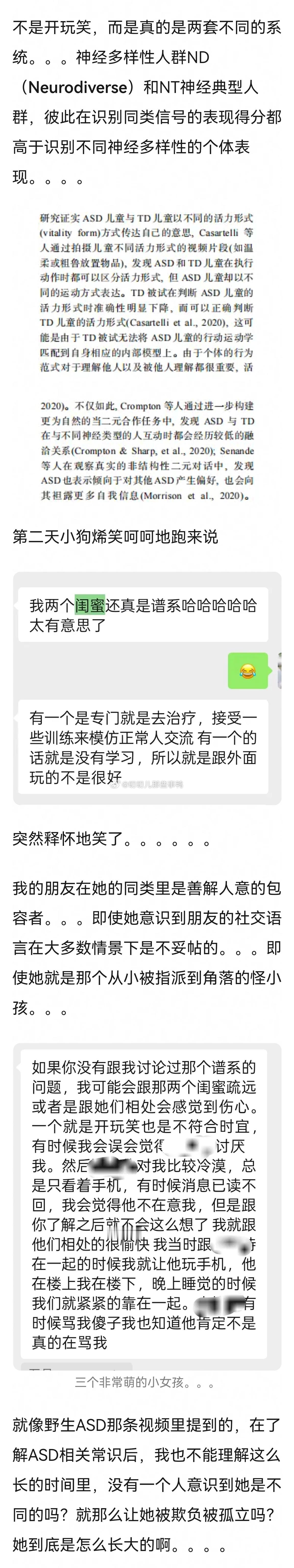 好温柔的帖子,很多人要是碰到像楼主这种情况估计回来就拉黑或疏远了,但楼主同理心好强愣是找出了原因去共情和坦然交流,我上网就是来看这个的→“原来人类内置的系统是不一样的啊”🤔🤔
