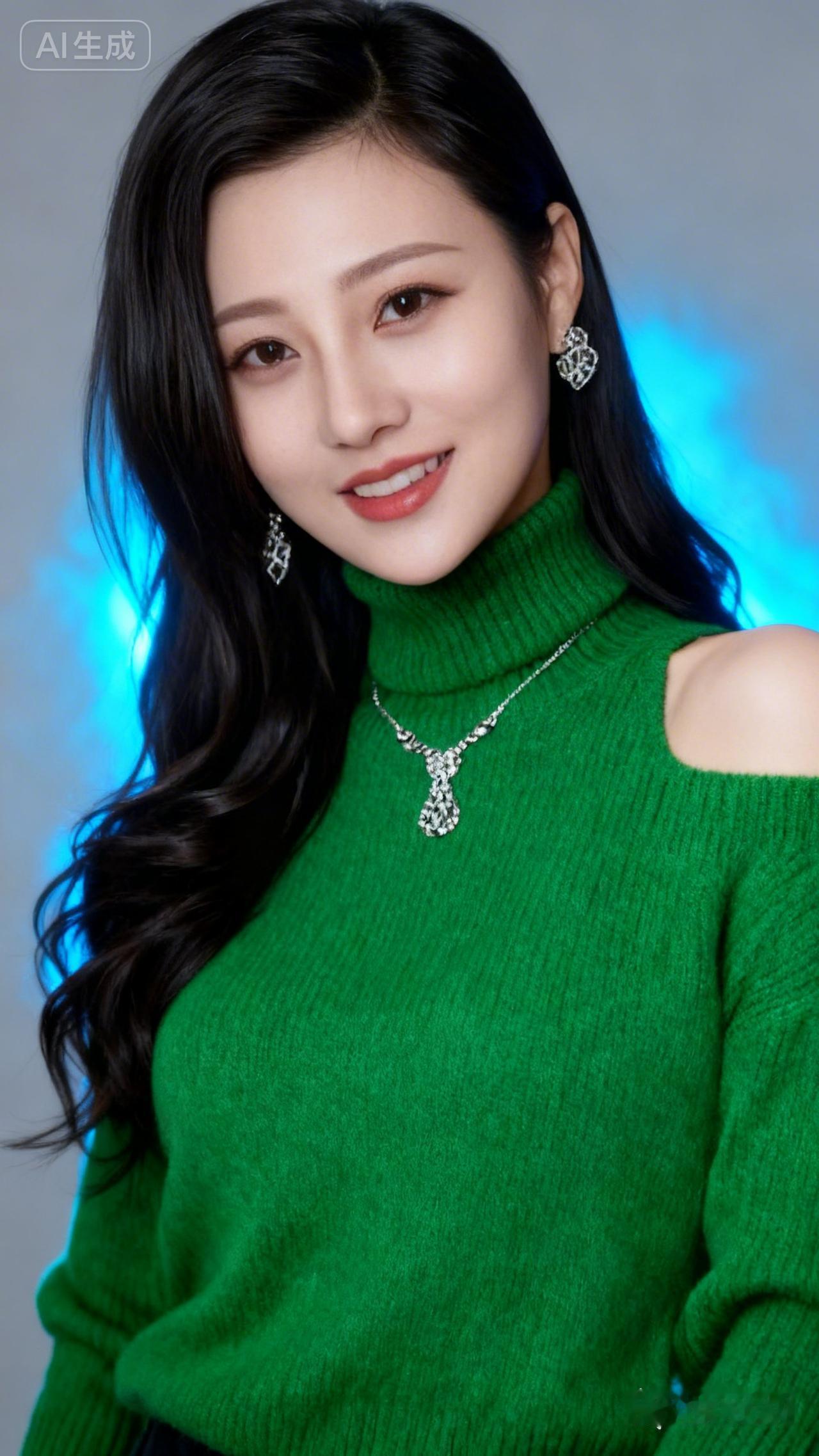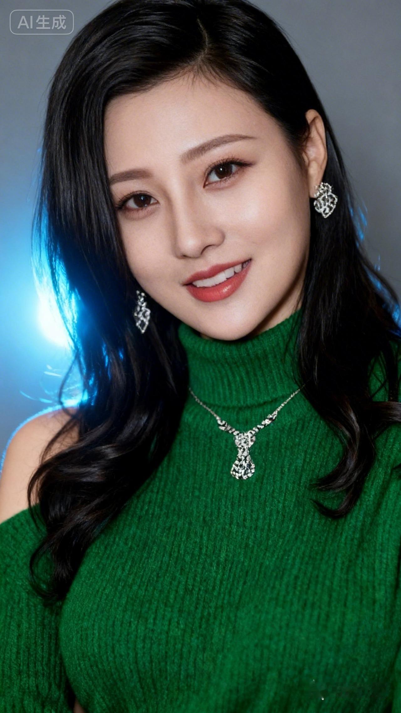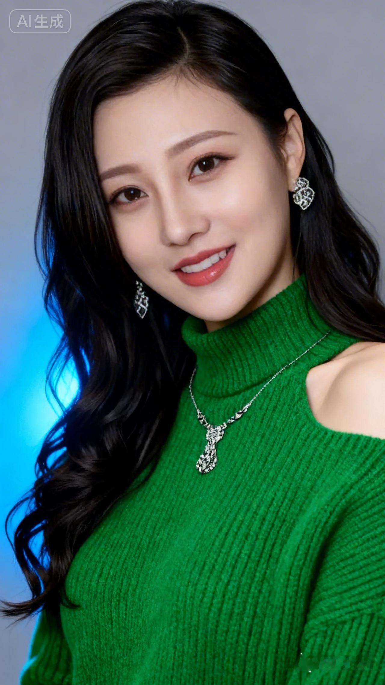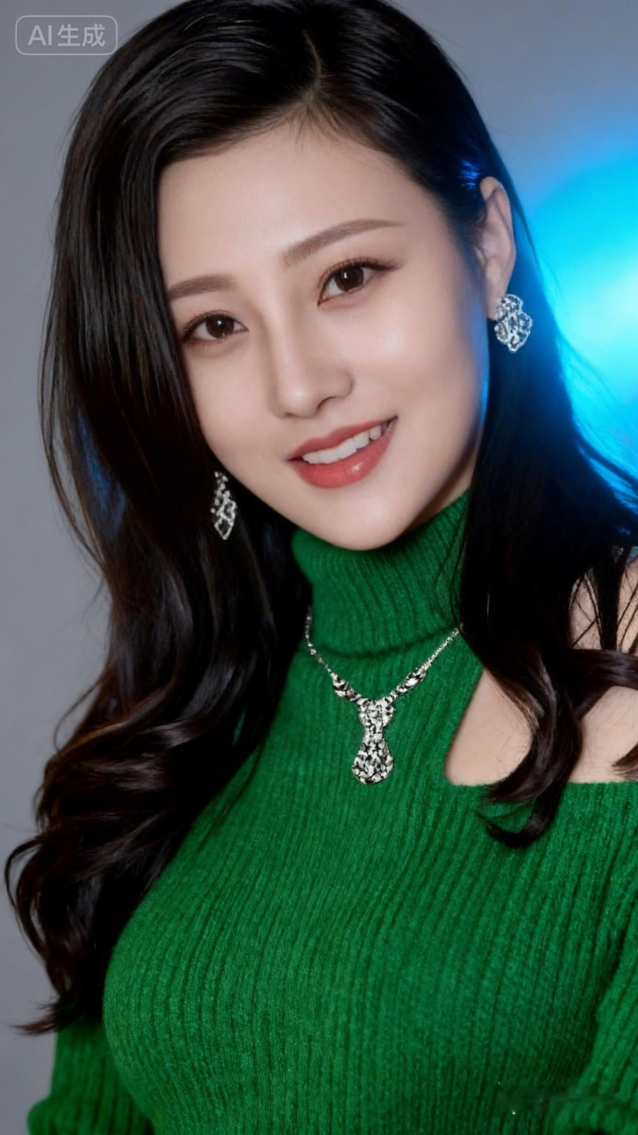 优雅绿衣少女,微笑动人,闪耀耳环,尽显魅力!