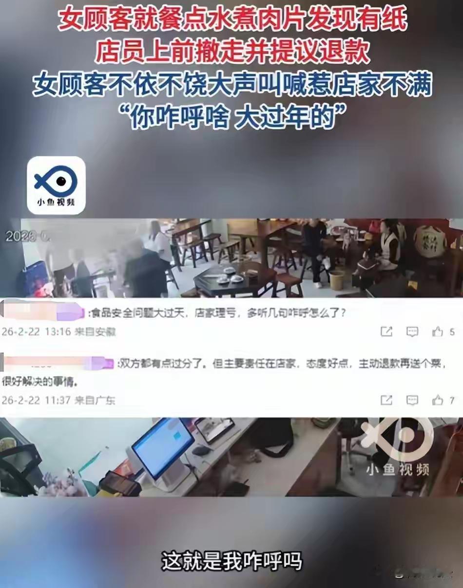 山东济宁,一女子跟家人聚餐,点了份水煮肉片,刚扒拉两口,就从菜里翻出一张纸片,瞬间炸了锅。她扯着嗓子喊着要店员尝尝这“异物”,店员却冷漠回应:“退菜不行。”随后,她与老板、老板母亲吵得面红耳赤,同桌的男人怎么劝都劝不住。原本占理的事情,最后却反倒落了个骂名。到底,这场风波的错在谁?是女子的过激反应,还是餐厅的冷漠态度?这背后,隐藏着怎样的社会现实和人性真相? 一张小小的纸片,搅动了一桌人的情绪,也引爆了无数网友的讨论。有人说,餐厅服务态度差,顾客理应得到尊重和合理的解决方案;有人认为,女子反应过激,公共场合大吵大闹,影响他人用餐体验;还有人指出,家庭成员的劝说无效,反映了现代人情绪管理的缺失。 但如果我们透过现象看本质,会发现这起事件远不止一张纸片那么简单。它暴露的是当下服务行业普遍存在的态度问题:面对顾客投诉,很多商家选择回避、推诿,甚至冷漠以对;而消费者在权益受损时,往往缺乏有效沟通的渠道,只能用激烈的方式表达不满。 更深层次的是,这场冲突反映了现代社会中“权利意识觉醒”与“服务质量滞后”之间的矛盾。消费者越来越懂得维护自身权益,不愿忍气吞声;但部分商家还停留在“顾客就是上帝”的表面,缺少真正的服务意识和危机处理能力。 女子为何会如此激动?不是无理取闹,而是长期积累的消费失望和被忽视的愤怒爆发。她的呐喊,实际上是对公平和尊重的强烈诉求。店员的冷漠回应,无疑是火上浇油,让原本可以平息的矛盾变得不可收拾。 而在这场争执中,同桌男人的劝说无果,也反映出当代家庭中面对矛盾时,缺少有效沟通和情绪管理的尴尬局面。每个人都想做“理智派”,但情绪的洪流往往让理智无处安放。 这件事引发了网友们的热烈讨论:“如果是你,遇到这种情况会怎么做?”“餐厅应该怎样改进服务?”“消费者权益保护到底该如何落实?”这些问题,正是我们每个人都可能面对的现实。 解决这类问题的关键不在于谁对谁错,而在于如何建立起互信和尊重的沟通桥梁。餐厅应主动承担责任,尊重顾客的合理诉求;顾客也应保持冷静,理性表达不满。只有这样,才能避免“小事变大事”,让消费环境更加和谐。 更重要的是,社会需要强化消费者权益保护机制,让每一位消费者都能在遇到问题时有渠道、有保障地维护自身权益。同时,商家也应加强员工培训,提高服务意识和应对突发事件的能力。 这起“水煮肉片里的纸片”事件,表面上是一场餐厅与顾客的冲突,实则映射出的是现代消费社会的矛盾与挑战。它提醒我们,每一个细节都可能成为引爆点,每一次沟通都决定着关系的走向。 亲爱的读者,你是否也曾在用餐时遇到过类似的尴尬和无奈?你又如何看待这起事件中各方的表现?欢迎留言分享你的故事和观点。让我们一起探讨,如何在日益复杂的社会关系中,找到理解与包容的平衡点。 毕竟,生活不易,人人都在努力。理解彼此,尊重彼此,或许才是解决问题的最好方式。