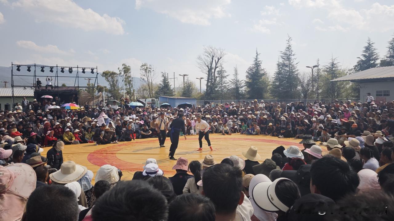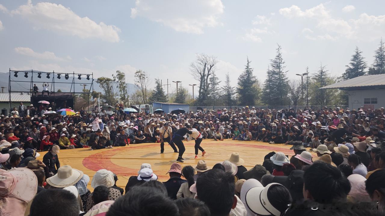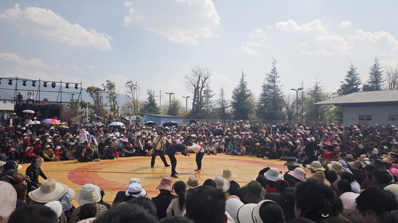 今天来黄草洲湿地公园,看摔跤比赛。今天比赛内容是15岁以下儿童组比赛,还有就是女子摔跤比赛。 儿童组比赛主要是看起来搞笑,没有惊心动魄。女子组还可以,动作和力度都有,相对比较精彩。 在云南,遇上过春节,这种集体性活动还是比较多的,斗牛、摔跤、各种文化节,节目相当丰富相当多。