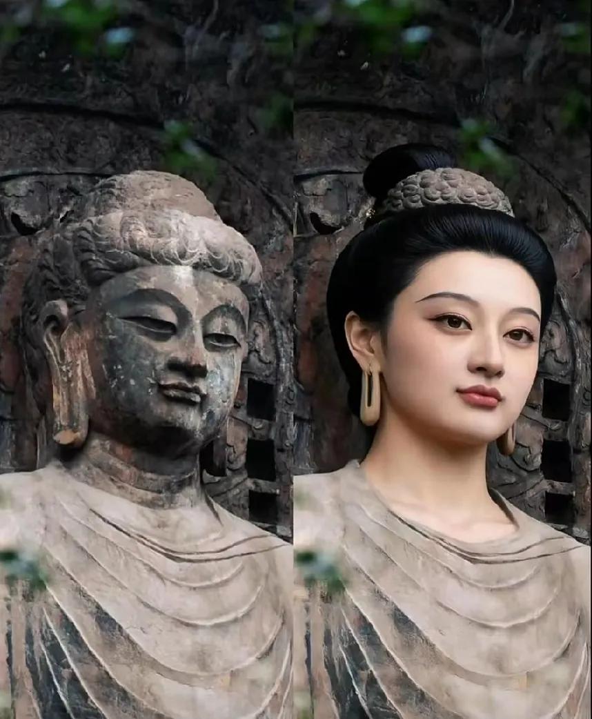 听说龙门石窟卢舍那大佛当年是按武则天样貌雕刻的,用AI技术还原后有景甜等女明星的