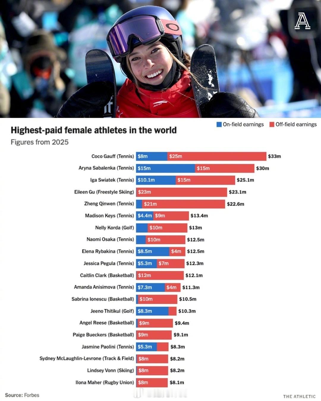 谷爱凌炸完赛场炸秀场夺冠后又要去米兰时装周了,果然是运动时尚通吃!2025年收入达2300万美元,但其中只有10万美元来自她的运动项目本身。