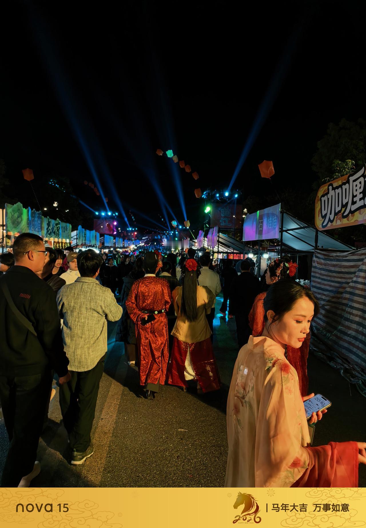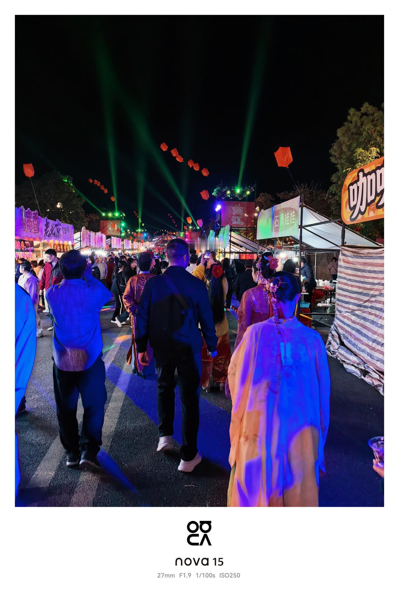 nova15拍夜景太牛了!热闹的夜市场景,灯光1nova15拍夜景太牛了!热闹的