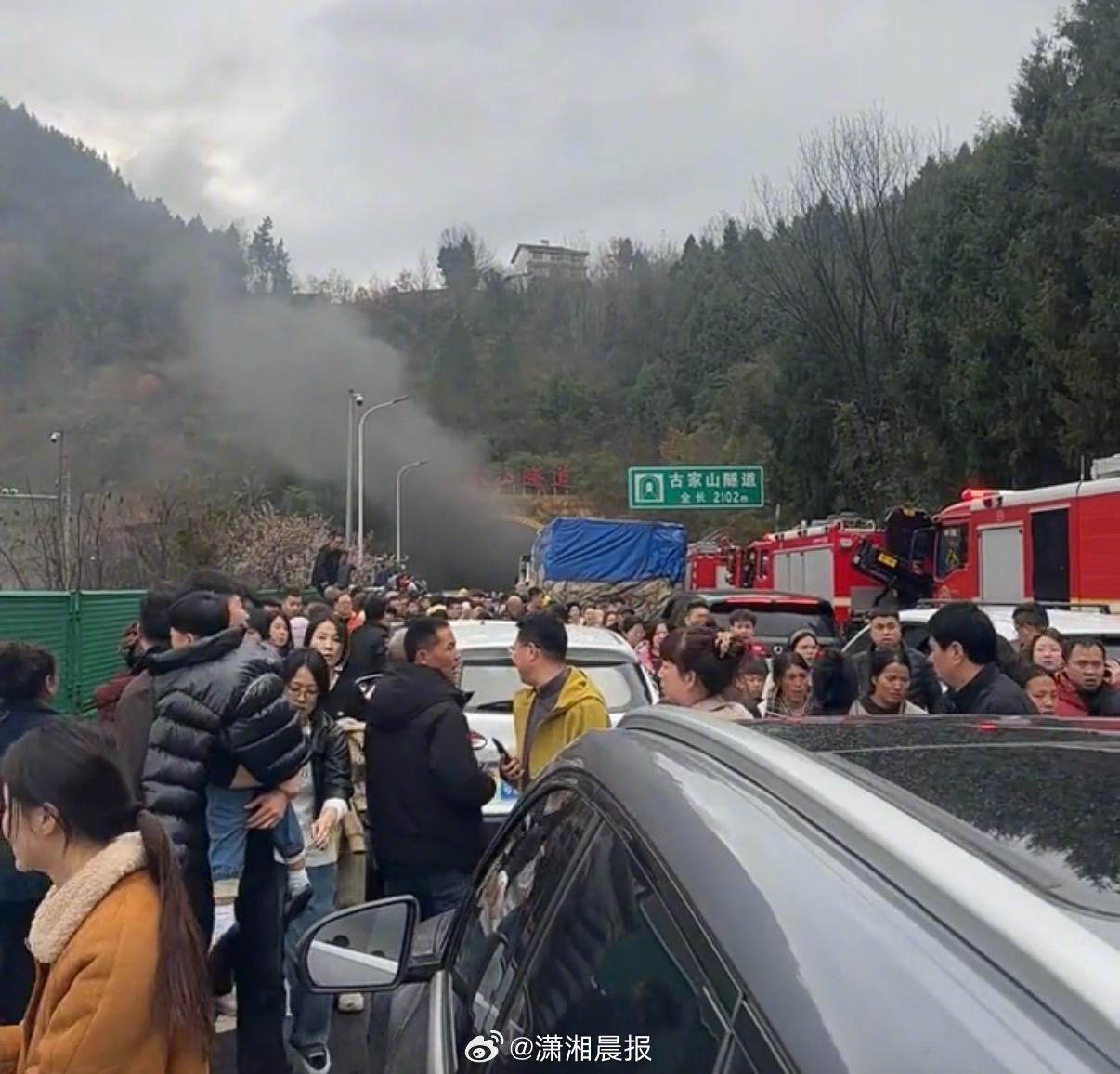 【#货车在古家山隧道起火亲历者发声#,众人误以为爆炸紧急躲避,有妈妈来不及穿鞋抱孩子就跑】#隧道货车起火妈妈没穿鞋抱孩子就跑#2月23日上午,G5京昆高速广陕段古家山隧道发生一起货车起火事故。