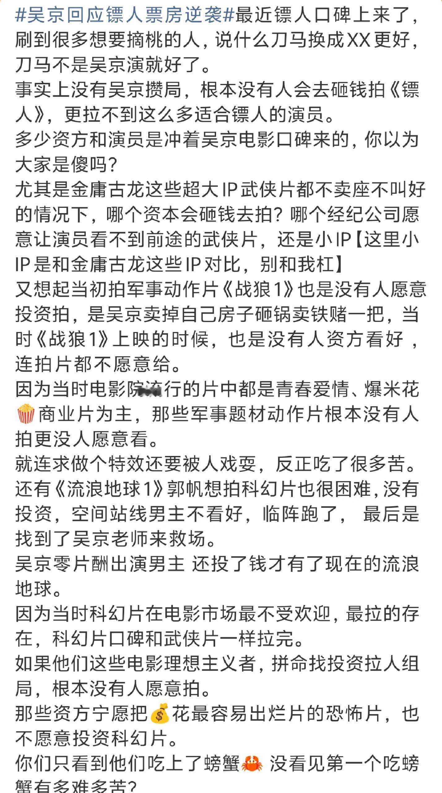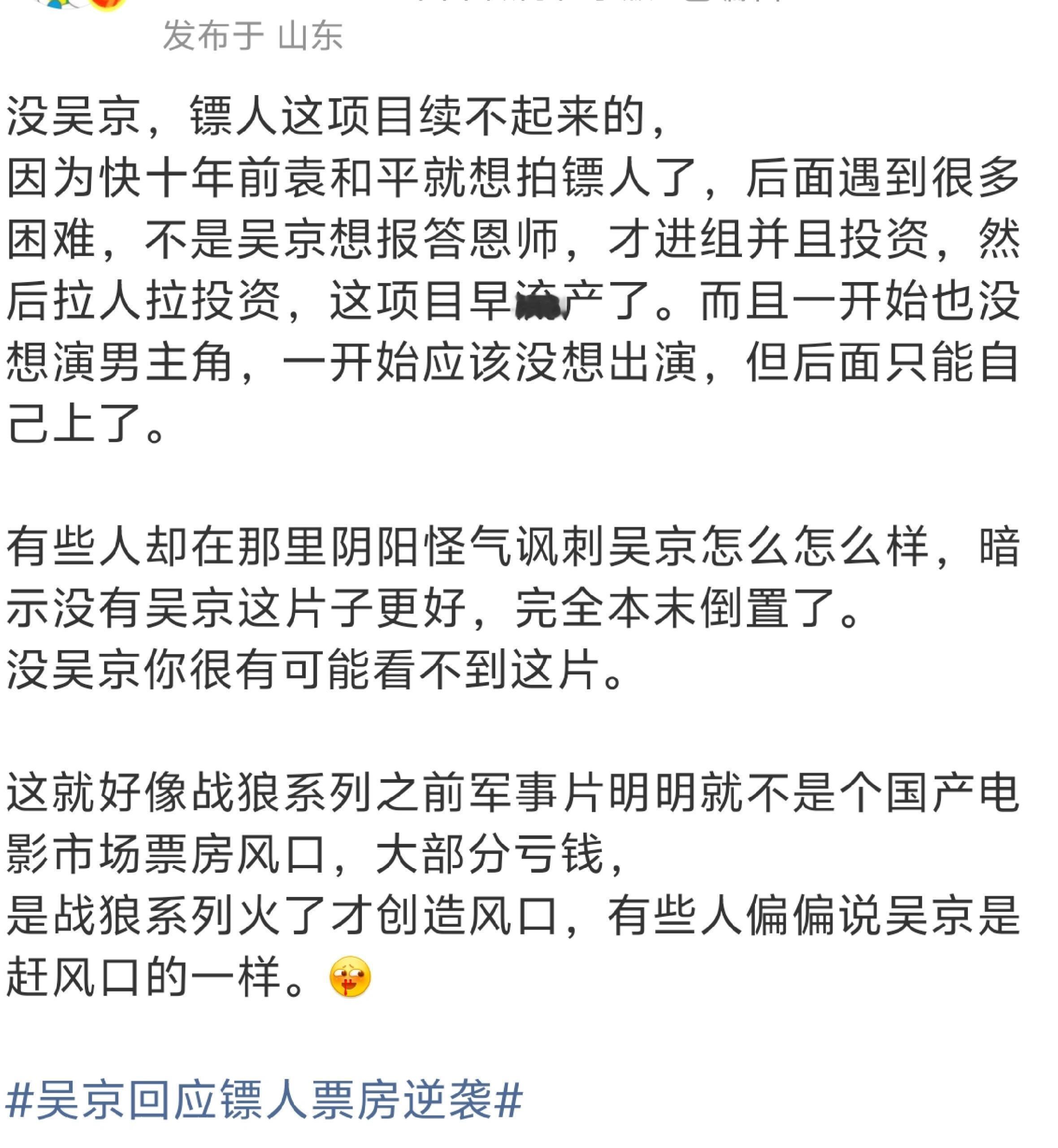 没有吴京,镖人这个项目根本整不起来