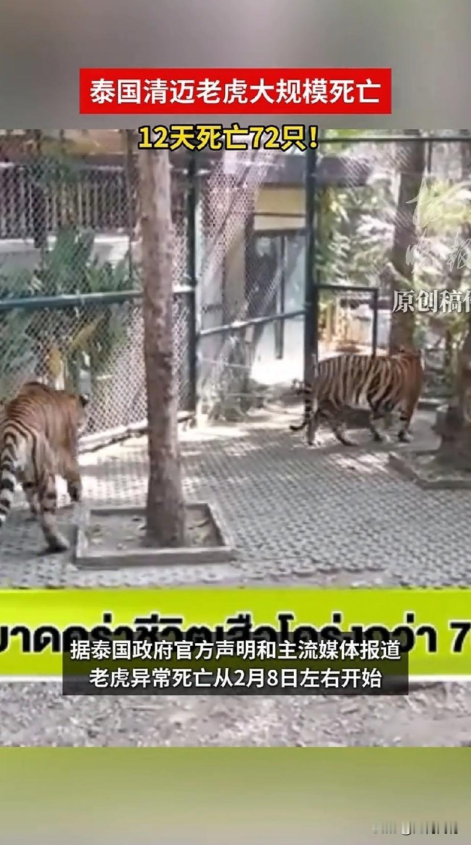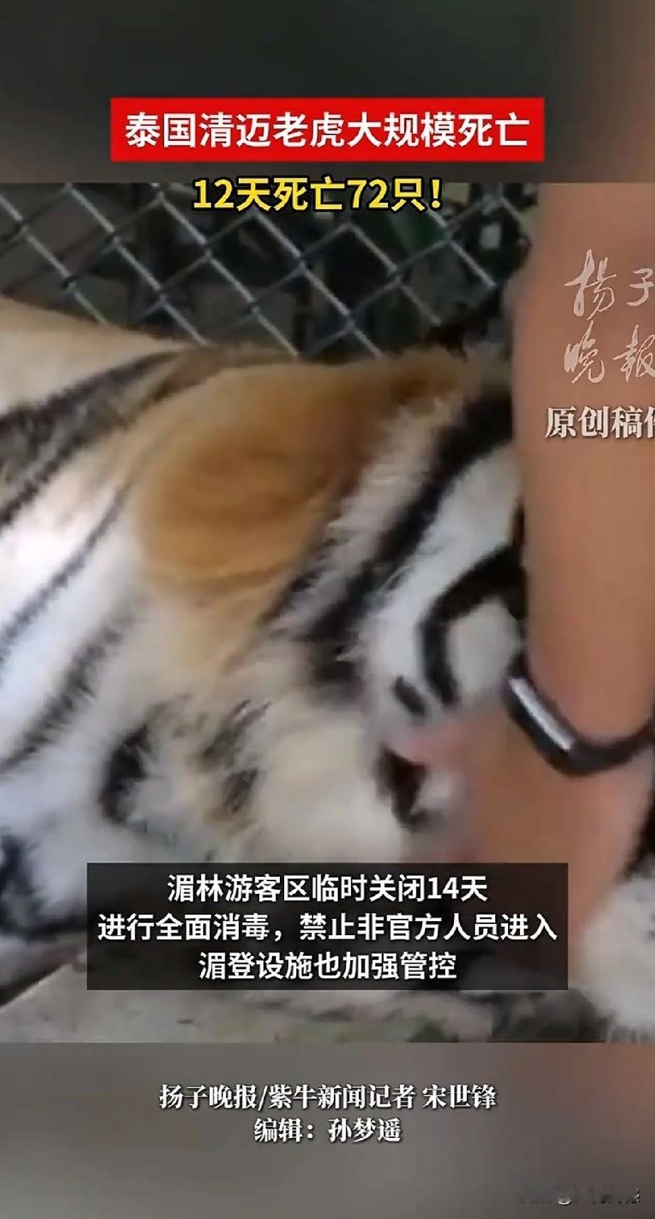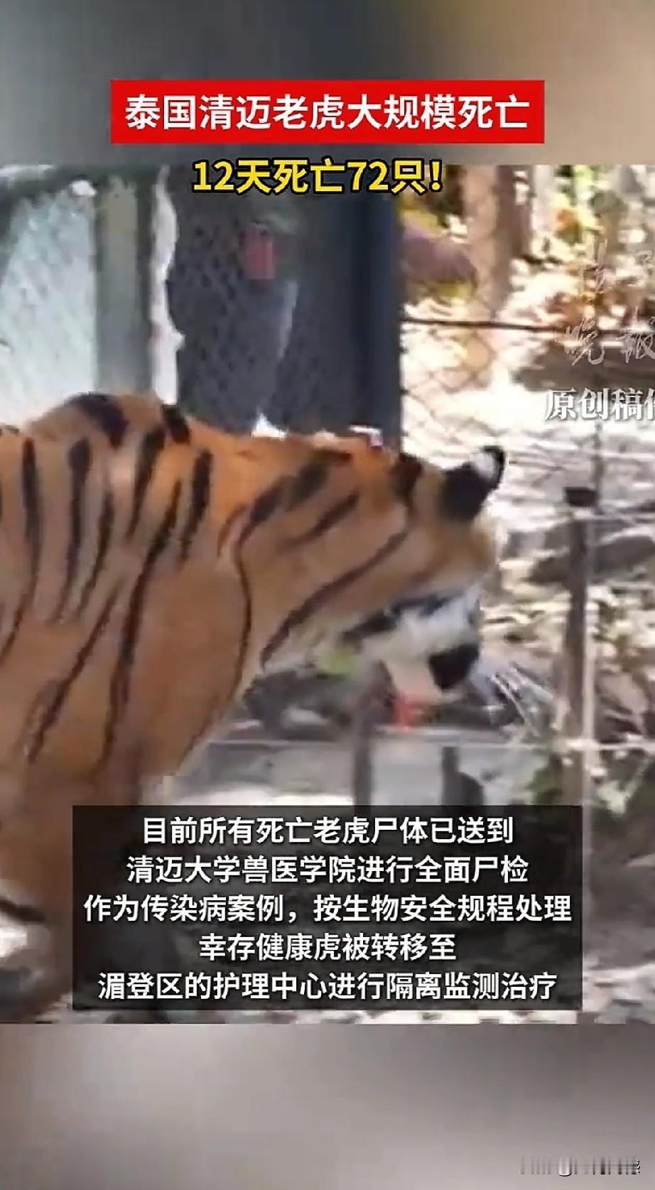 12天死了72只老虎,泰国清迈的老虎商业繁育场所发生了大规模的老虎死亡事件,死亡的异常情况从2月8日开始,12天的时间内,72只老虎都死掉了,这规模的确是够大的了,老虎到底是得什么毛病死的呢?据说是得了猫科动物的细小病毒,以前光听说狗得细小病毒,真没有想到老虎也得这个毛病,这东西也太厉害了!