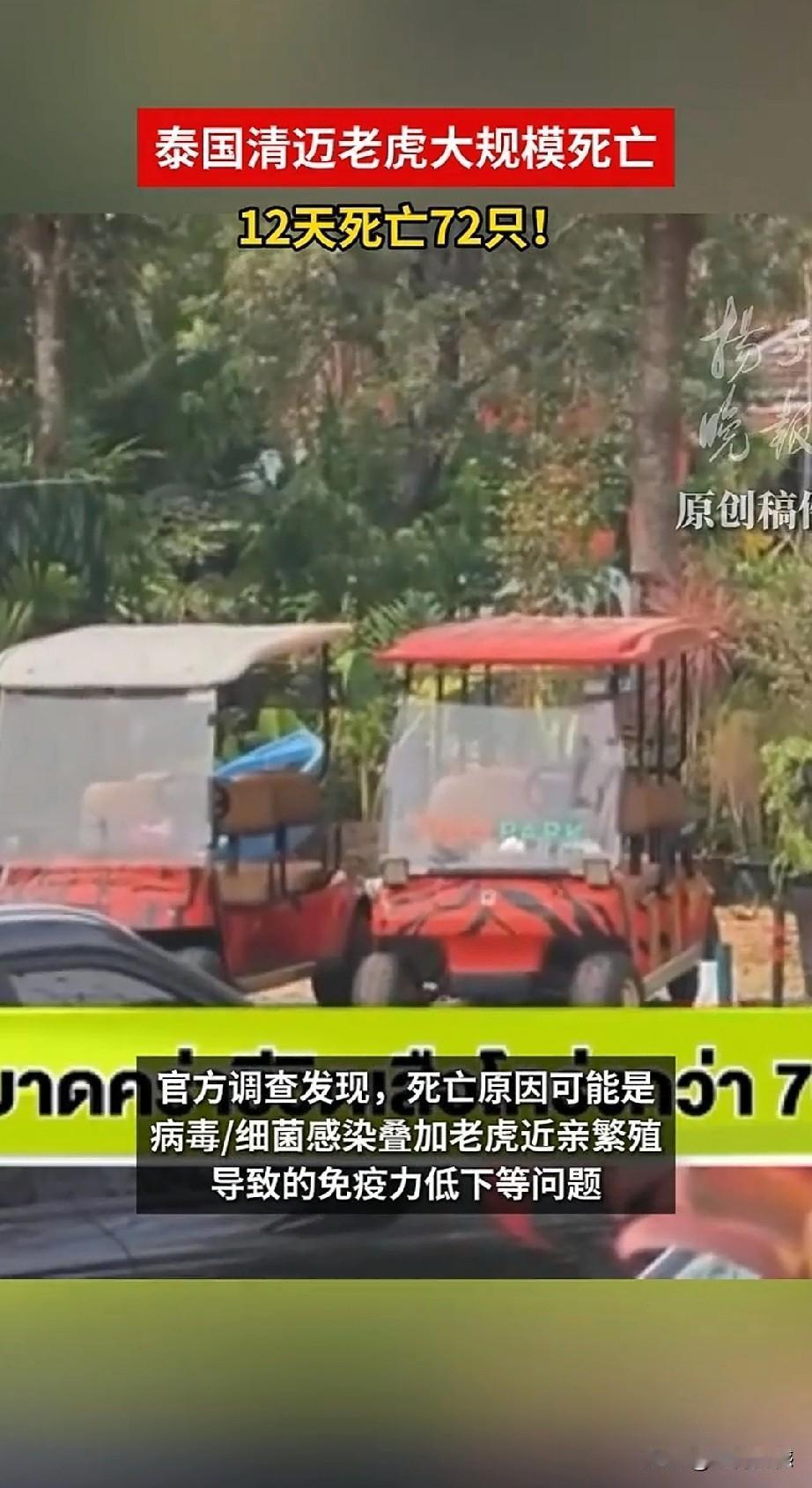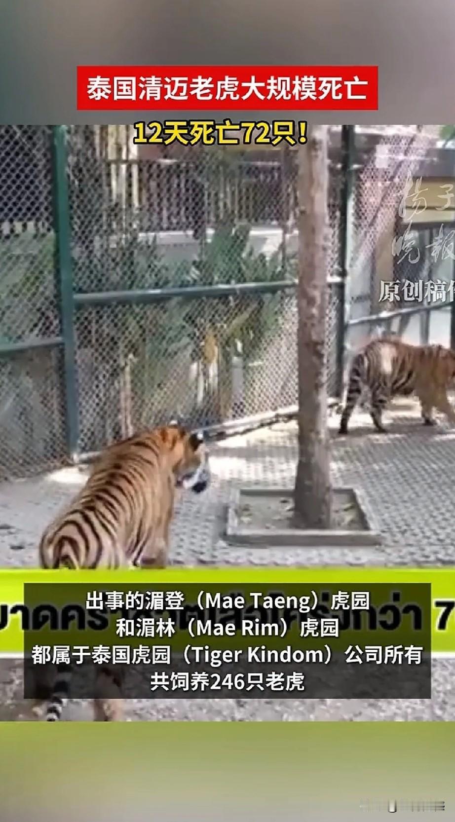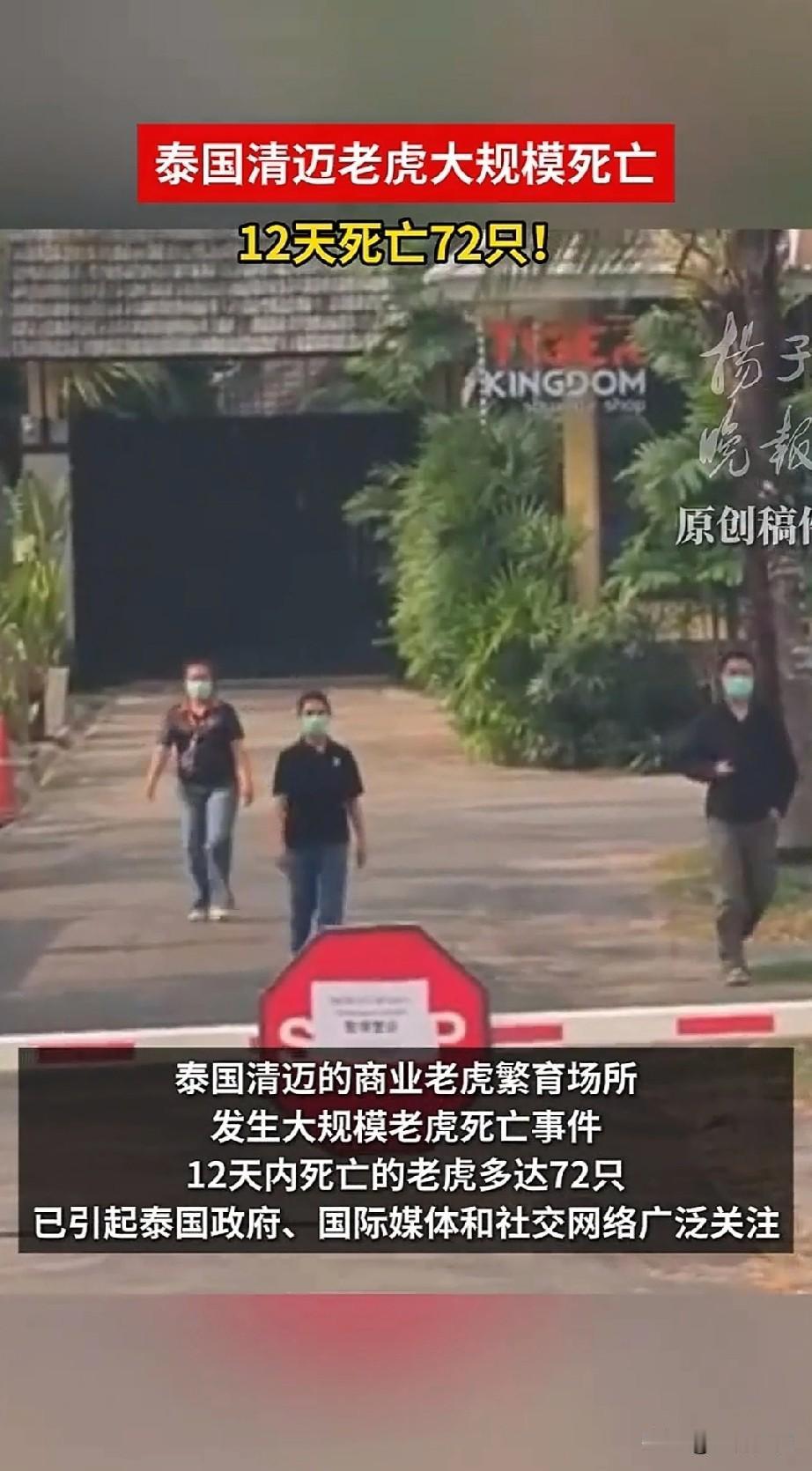 12天死了72只老虎,泰国清迈的老虎商业繁育场所发生了大规模的老虎死亡事件,死亡的异常情况从2月8日开始,12天的时间内,72只老虎都死掉了,这规模的确是够大的了,老虎到底是得什么毛病死的呢?据说是得了猫科动物的细小病毒,以前光听说狗得细小病毒,真没有想到老虎也得这个毛病,这东西也太厉害了!