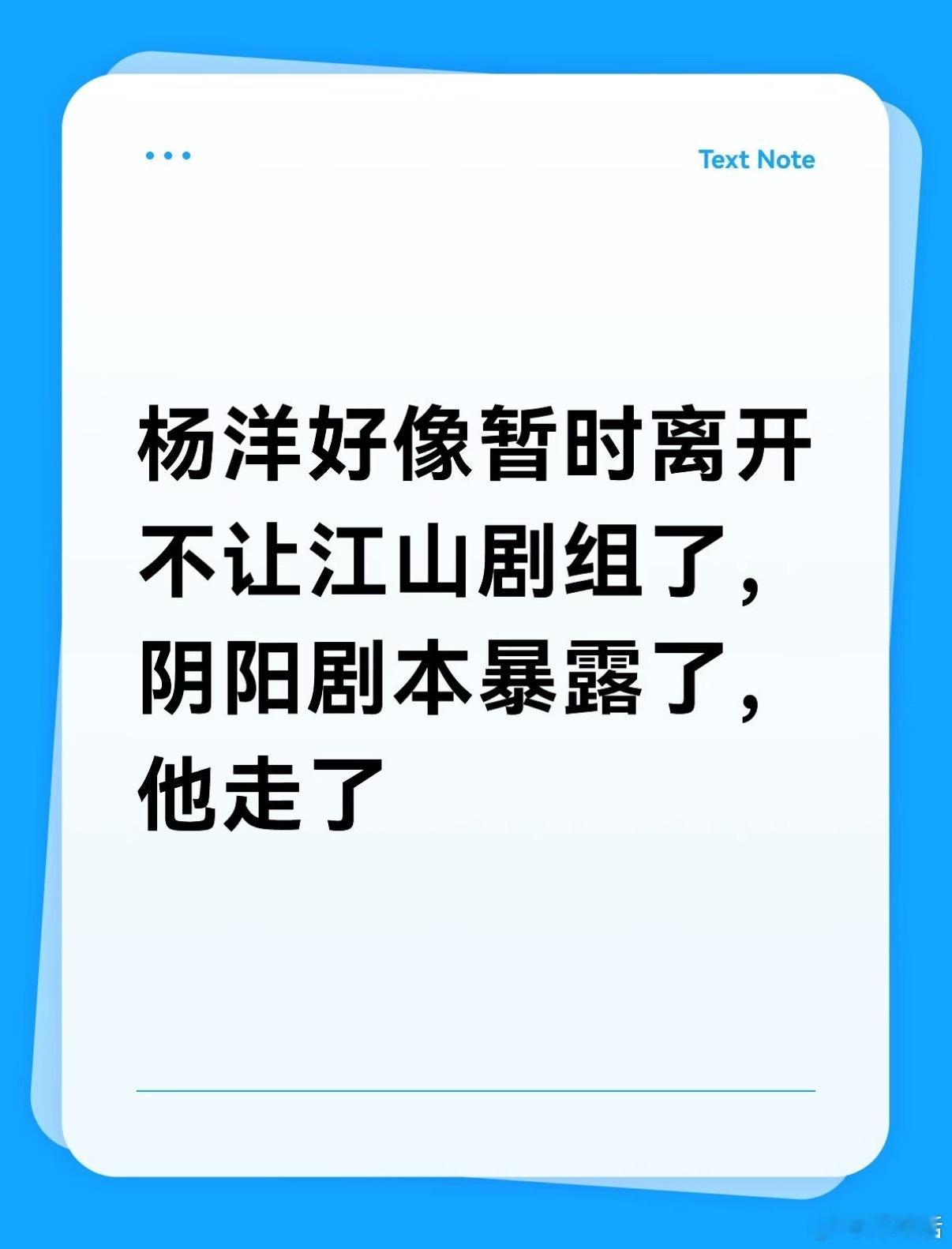 疑似杨洋回家养伤 杨洋好像暂时离开《不让江山》剧组了,阴阳剧本暴露了,大男主剧本
