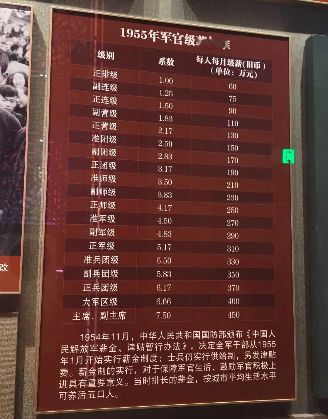 军师博物馆看到的1955年军官级薪标准,震惊!