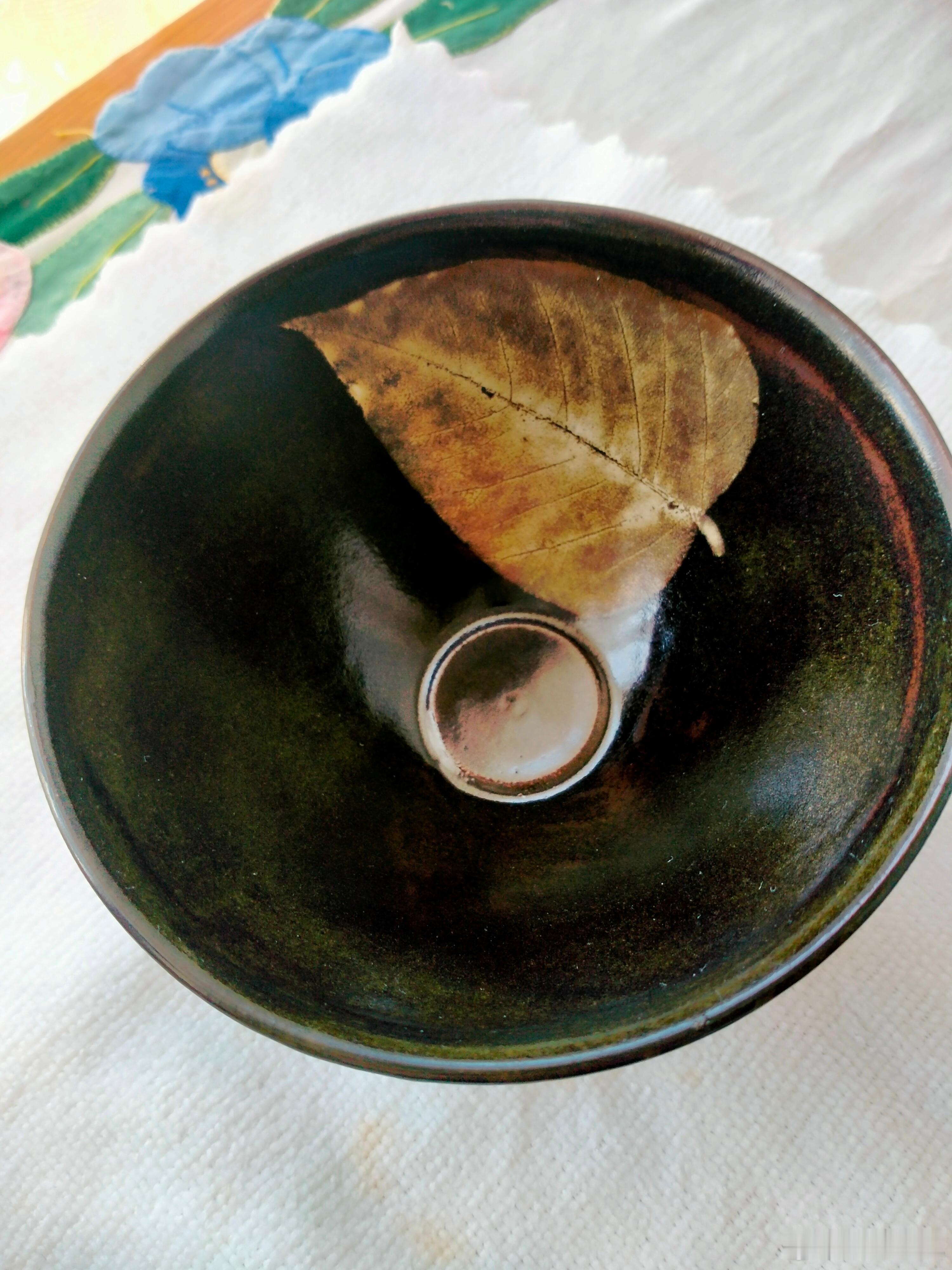 每周鉴赏收藏精品之吉州窑木叶天目盏 木叶天目盏现在是仿品最多的瓷器品种之一,真假难辨。 我们在国外又收到一个木叶天目盏。现在,我们有三个了,一新一老以前讨论过。可以用这个新收到的来作为佐证一下新老辨认的方法。我们总结的主要有三点: 第一点是密度。每个盏因为大小不等,会有不同的重量,通常说新的重、压手,也太抽象,没有尺度。但盏都是圆锥体,通过重量与体积可以推算出大概的密度。这已经足够了。新仿的比到代的,密度要高出30%以上;老的到代的,尽管大小轻重不同,但密度基本上是相差不多。我们新收到的这个木叶天目盏,比较大,重量与新仿的差不多,但密度与到代的那个基本持平。应该是一个比较准确的辨别真假的方法。并且是可以独立论证的。 第二点是叶脉的清晰度。古代木叶天目盏的叶脉处理会去掉某些成分,然后,如果是沾上浅色釉平铺在釉面时,叶面区域会露出底釉;如果是铺在釉面上,再涂浅色釉时,叶面会着色,但叶脉会漏出底釉,本件就是这样的。这是一个辅助的论证方法。 第三点是看有没有漂浮的浅色釉。像本件木叶天目盏,盏的内壁和外壁,都有青色的飘浮落下的微小斑痕。可能是当时施釉环境空气流动所致。这也是一个辅助的论证方法。 通过以上三个方面综合分析,本件吉州窑木叶天目盏应该是南宋时期的真品。