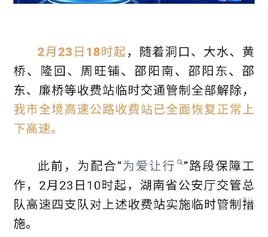 大年初七,你在路上了吗? 今天是长假的最后一天,也是高速免费的最后一天,随着返程的人群越来越多,沪昆高速上的车流量再次爆满了,邵阳人民再一次发扬了舍己为人的风格,“沪昆高速邵阳段的收费站临时管制”!大家需绕行国道上高速! 不过到了18时,全境收费站已全部恢复,大家又可以自由出行了!