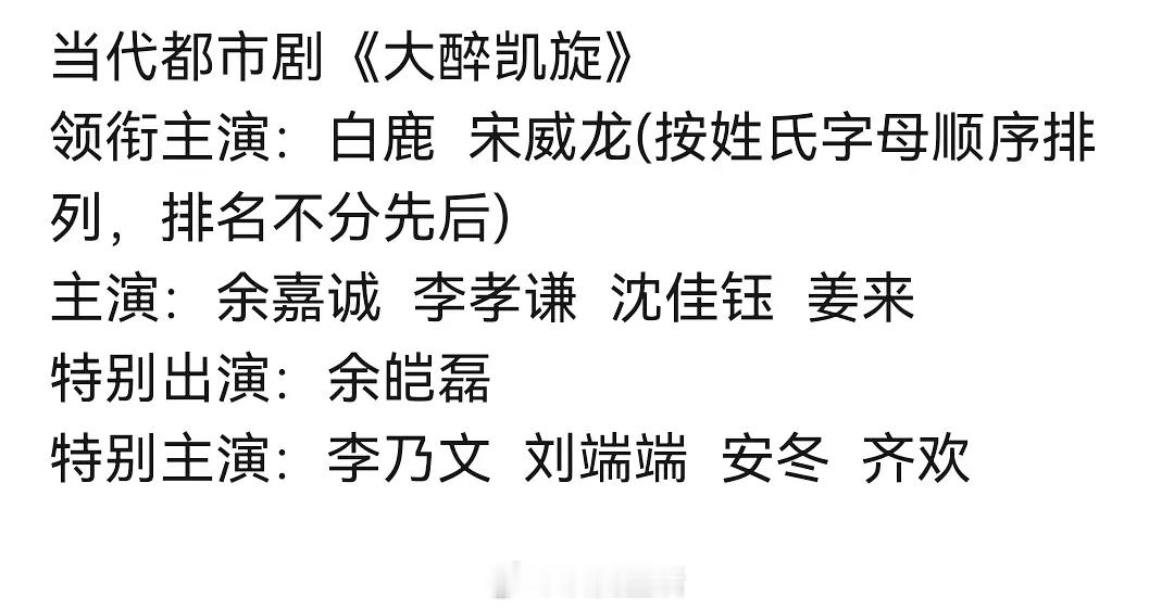 有人放🍉白鹿和宋威龙即将合作都市剧大醉凯旋,可能平番。