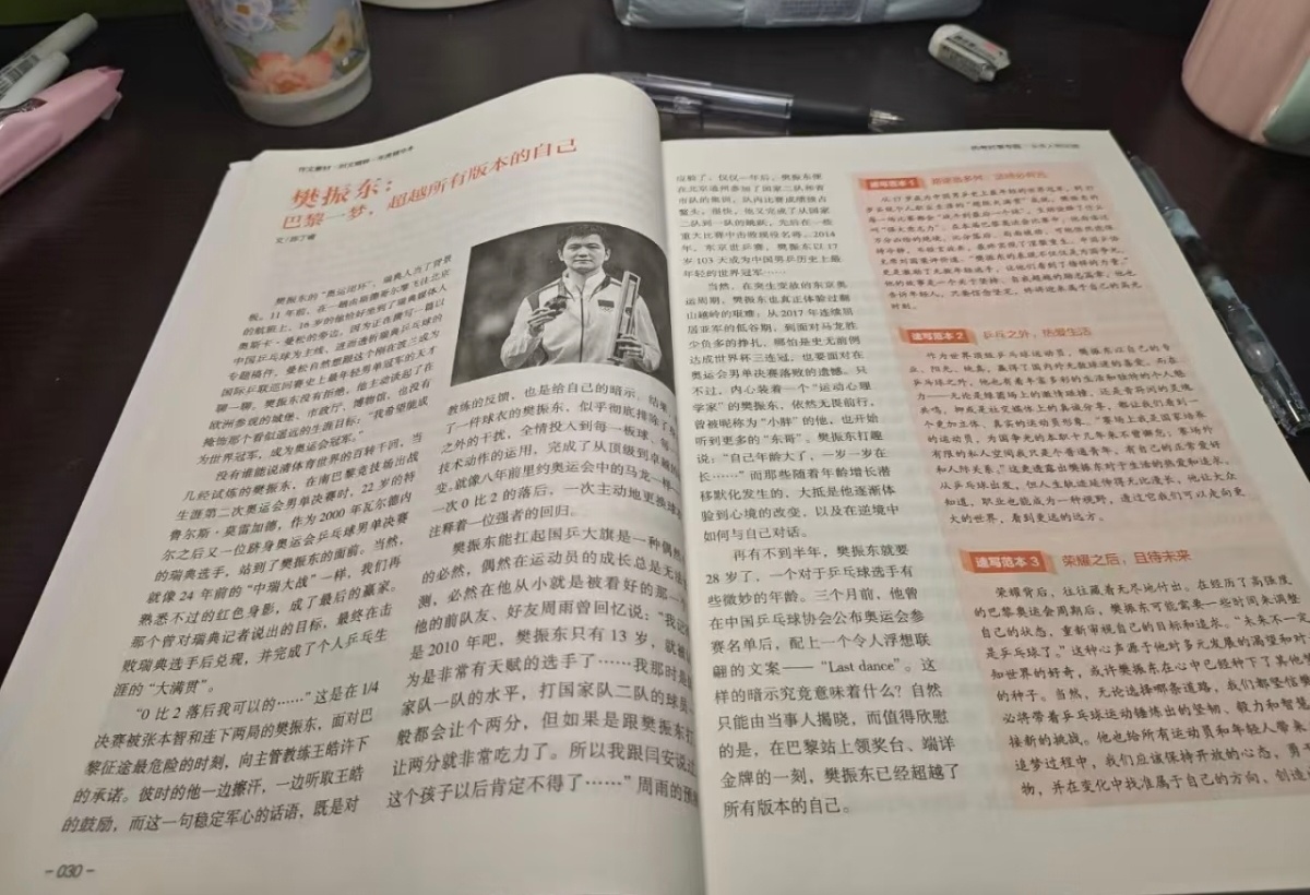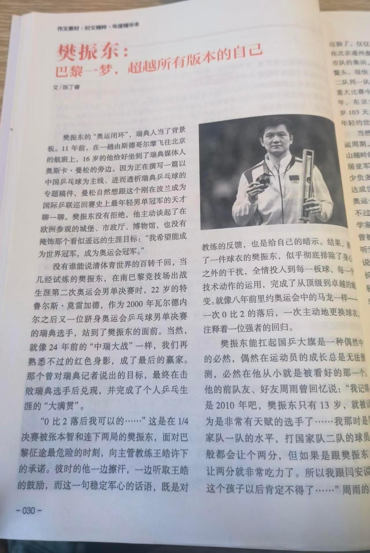 作文素材中的樊振东,当樊振东编撰在我的作文素材书里,谁懂这一刻的含金量
