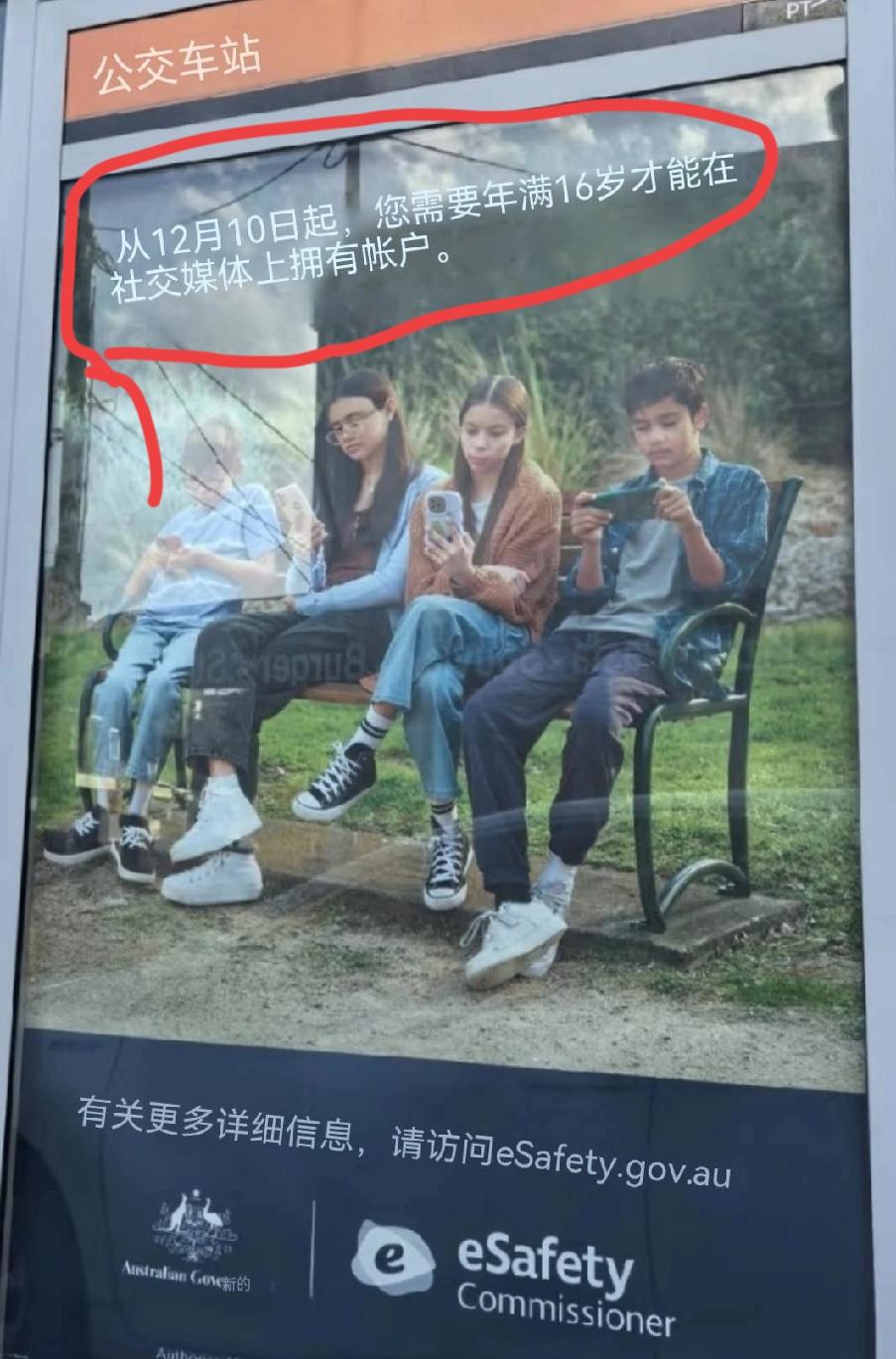 他们釆取行动了, 防青少年沉迷于网络。 这是在澳大利亚, 在公交站,随处可见如下内容:从(2025年)12月10日起,您需要年满16岁,才能在社交媒体上拥有账户。 青少年沉迷于网络,会对学习产生一定影响,有利有弊,对于无自控能力的人来说,影响最大。 青少年手机沉迷 青少年社交媒体 保护未成年网络
