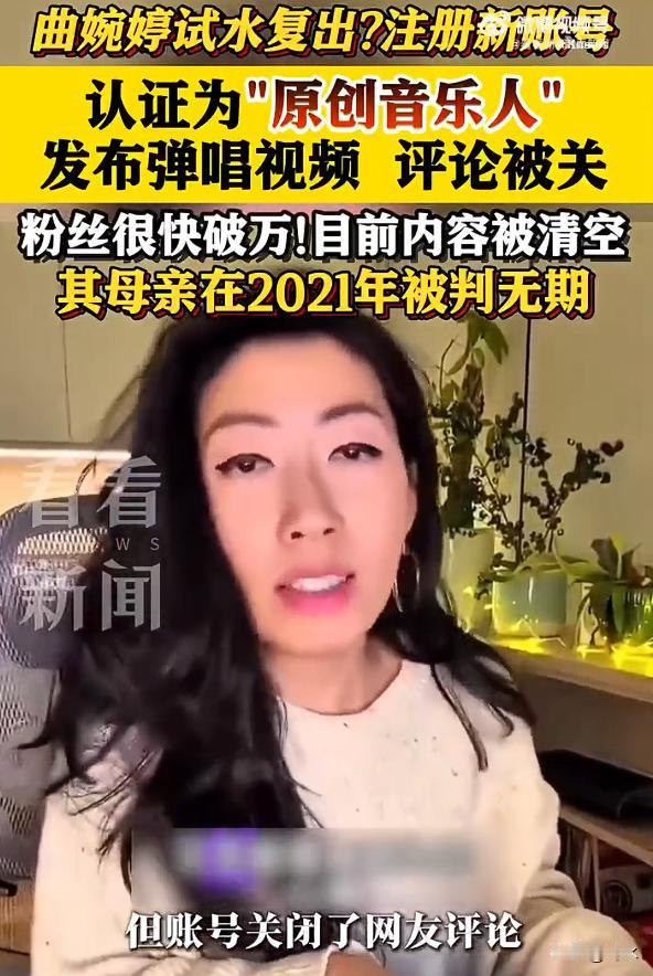 曲婉婷账号没了,想复出未遂。我看到有评论说,事情已经过去了,和她没有关系,她唱歌那么好听,她想复出,支持她继续创作。 我想问问,有多少人支持曲婉婷复出?有多少人支持曲婉婷母亲贪污受贿的事情已经过去了?大家对于这件事怎么看?