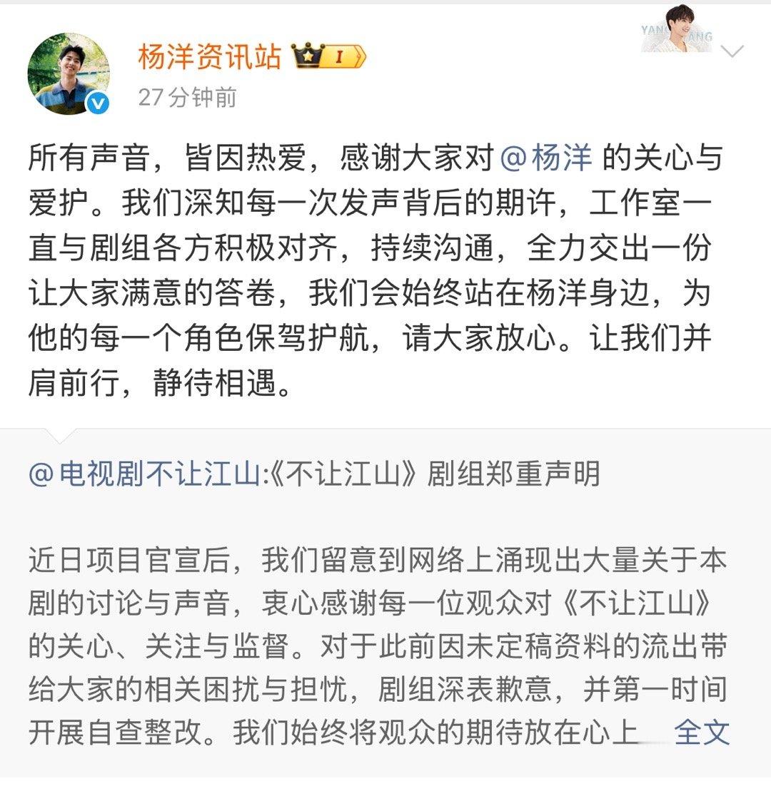 不让江山剧组发声明回应,杨洋粉丝成功了。连杨洋这种级别的演员都会遭受不公平待遇。