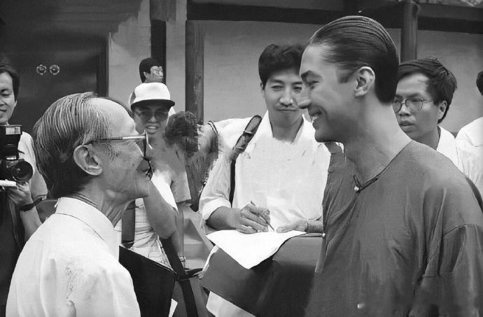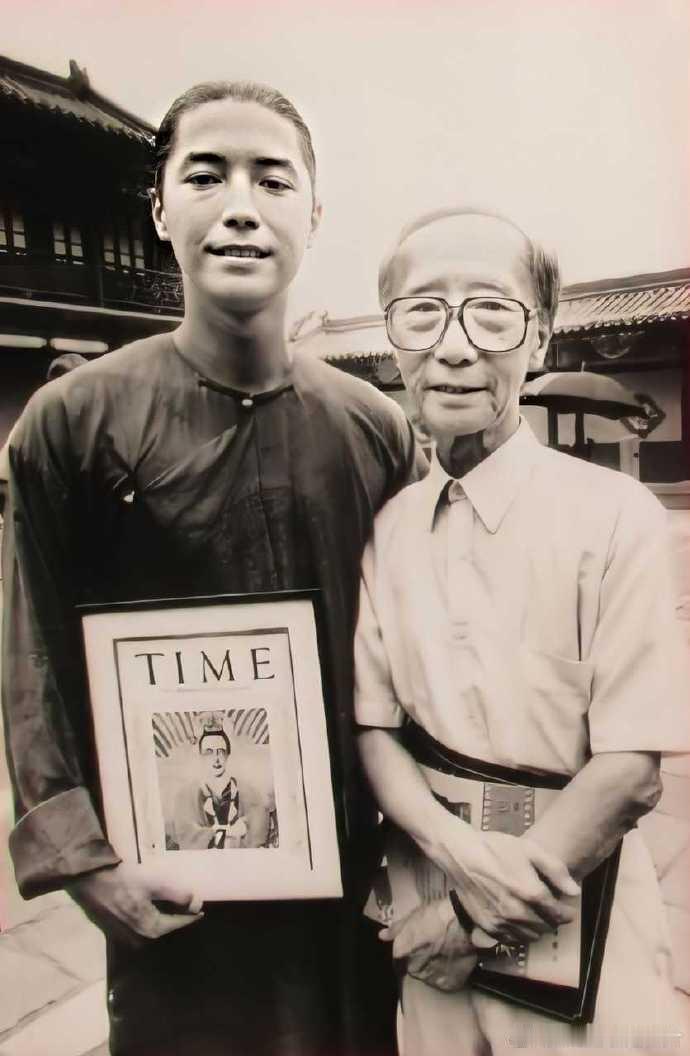 1986年,电影《末代皇帝》片场,尊龙与溥仪胞弟浦杰的合影。浦杰曾接受《宁波日报》采访,称扮演自己大哥的演员太过漂亮。