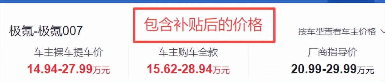 虽然现在很多电动汽车号称是一口价,但是因为竞争对手越来越多,而且也越来越有侵略性,所以不少电动汽车在终端的优惠幅度都特别大。你敢相信一款14万多的新车,不仅是当下比较热门的车型,而且是长续航,800V的高压平台架构,还有着出色的配置,今天介绍到的是极氪007。 极氪007这款新车来源于吉利汽车的高端品牌极氪,所以各方面的设计都较为优秀,不是那种低价格的电车可以比拟的。 作为一款纯电车,我们用户最关心的肯定是续航里程了。这款极氪007入门级车型就有着688km的长续航。值得一提的是,新车又分为单电机以及双电机版本。这并非是关键的,真正关键的是有着全系标配的800V高压平台架构,快充、慢充以及对外放电这些设计是一应俱全的!所以在外自驾游基本没啥焦虑,续航长,补能速度还特别的快。 极氪007采用了前双叉臂独立悬架以及后多连杆独立悬架,并且有着大量的铝合金材质,驾控感确实不错,也特别的轻盈,即使是新手也能轻松应对。值得一提的是,中高配置车型是带有悬架软硬调节的,这一点设计非常舒适。 外观设计采用了三厢轿跑样式造型,整体的设计以时尚年轻化为主。值得一提的是,这款极氪007全系标配了激光雷达以及双目感知摄像头,也有着两颗英伟达的高算力芯片,所以说这款新车其实是全系标配了L2级别智能驾驶辅助系统的,像自动泊车,入位功能,信号灯识别,这些全部都是标配。当然了,城市以及高速路段的NOA是需要额外花费开通的,常规版本可以正常使用。 内饰设计同样主流,全景大天幕,15.05英寸的LED屏幕,手机互联语音识别,这些配置是一应俱全的。除此之外,HUD屏幕尺寸达到了35.5英寸,还拥有真皮方向盘,带座椅加热和通风的皮质座椅,配置部分较为理想。让我感到比较惊喜的是,这款极氪007全系标配了车内香薰功能,这是妥妥的豪华级享受配置。 总的来说,不管是配置、续航,还是800V的高压平台架构,表现都是较为不错的。从用户实际购买的成交价来看,除去各种补贴,还是非常香的。这么一款极氪007,售价在15万的价格区间,你觉得性价比如何?关于这款新车目前补贴后的价格如此香,其实还有一部分的原因是新款正在申报,所以这也是折扣的一部分了。【来自懂车帝车友圈】