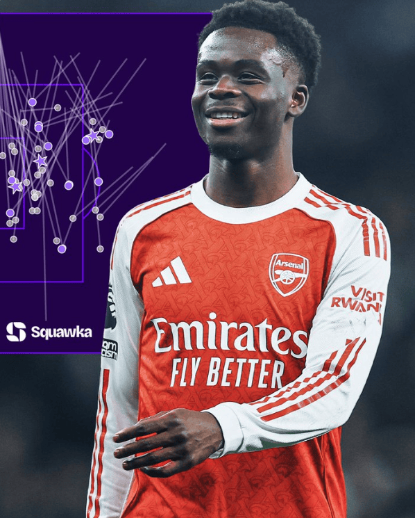 据数据统计网站Squawka统计,阿森纳边锋布卡约-萨卡是本赛季英超联赛中唯一一位完成至少40次成功过人且创造至少40次机会的球员。