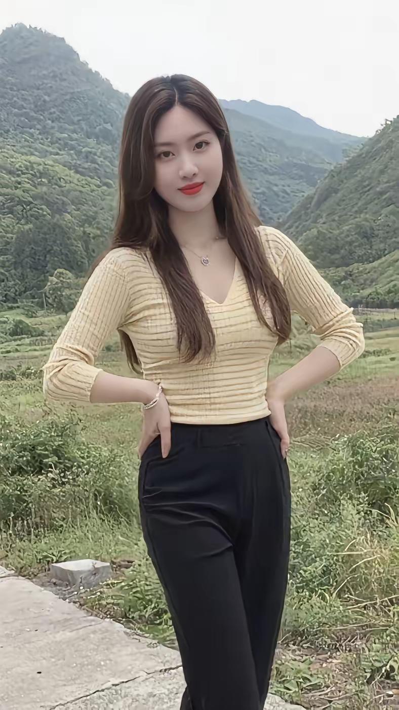山野间的温柔时刻 周末从城市跑出来,一头钻进山野,风里全是青草和泥土味儿。 今儿穿了件鹅黄色V领针织衫,竖条纹细细的,看着温柔还提气色,七分袖正适合这有点凉的天。下身穿条黑色高腰直筒裤,版型利落,显腿长,整个人看着清爽又干练。 站在青山绿林间,不用特意摆姿势,随便一拍都特别自在。在大自然里放松身心,把累都留在山野的风里。 郊野松弛感穿搭