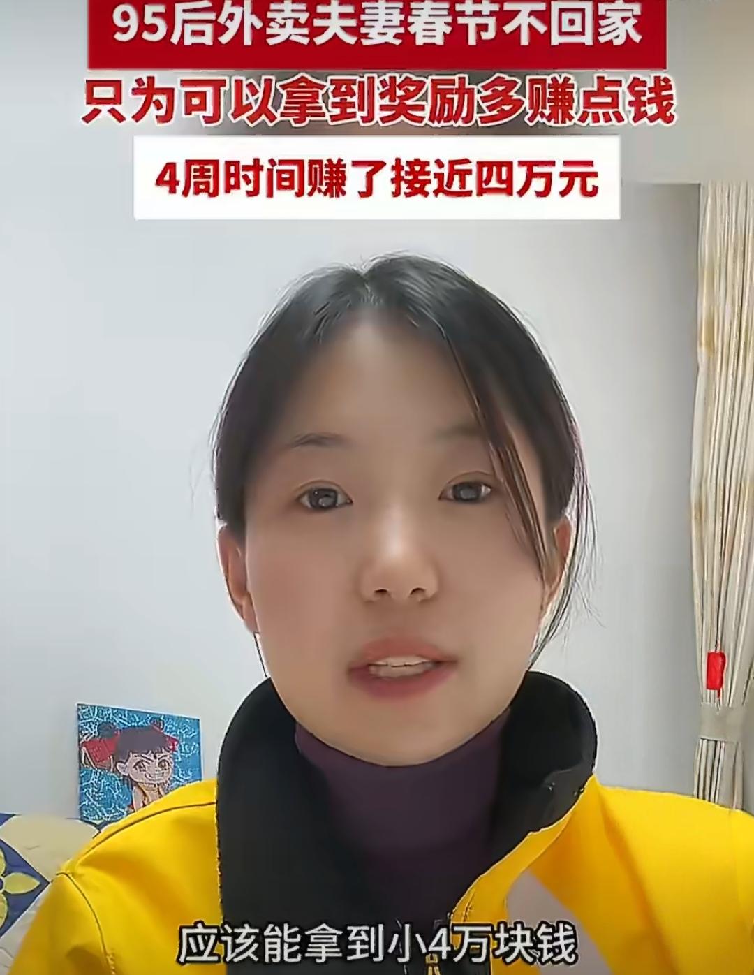 95后外卖夫妻春节不回家,4周赚近4万! 2026年春节,青岛的街头巷尾,总有