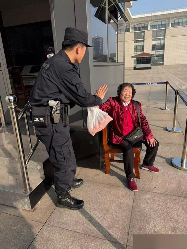 正在值守的辅警姜浩发现老人异样后,第一时间上前关切询问。当班民警郭鸿宇考虑到室外气温较低、老人行动不便,立即邀请老人进入岗亭休息,在老人婉言谢绝后,迅速搬来座椅,小心翼翼搀扶老人坐下,并详细了解其身体状况,主动提出帮忙联系家属。