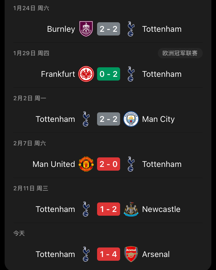 2026年,热刺踢了12场比赛,还没有战胜过英格兰的球队。