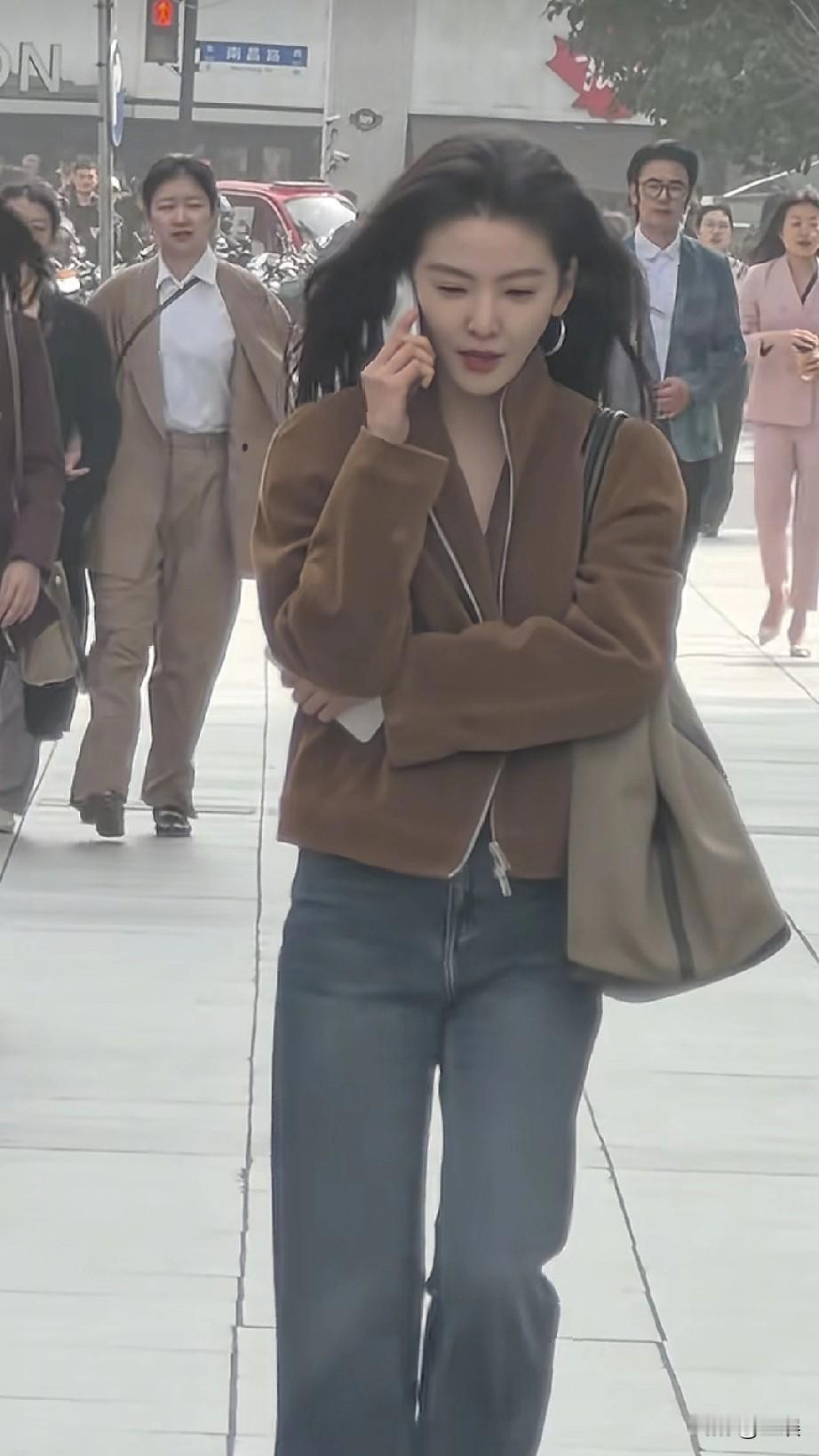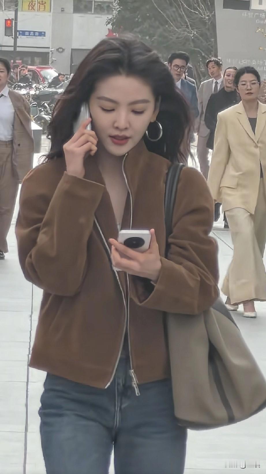 章若楠在街上打电话。