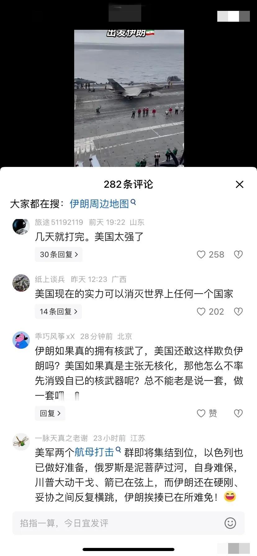 美伊局势一触即发,中文网上却有人明目张胆为美军叫好,背后值得警惕 美军双航母战斗群已在伊朗附近海域完成临战编组,配套多艘舰艇与大量官兵,这是多年来中东地区较大规模的美军部署。美方给出了相应的谈判时限,伊朗一方面准备与美方沟通会面,一方面也让相关武装力量进入战备状态,周边多国也就地区局势发声,整个中东局势已然处在一触即发的状态。 而比前线局势更值得注意的是,中文网络的评论区里,出现了一批异常活跃的账号,明目张胆地为美军的军事威慑叫好。 当下的舆论场明显出现分化。一部分网友理性分析美伊博弈,关注地区和平与全球能源安全;但另一部分账号的发言却高度雷同,片面放大美军军事优势,渲染伊朗处于劣势,甚至直接为美军施压行为点赞,刻意忽略美国在地区局势中起到的挑动作用。 这些账号特征十分明显:大多是新注册账号,无真实个人信息,评论发文频率极高,内容像统一模板,还会在多个相关话题下同步刷屏。这和普通网友的理性探讨完全不同,前者是模板化的情绪引导,后者是基于事实的观点交流。国安部门也曾公开提示,个别境外势力会通过社交平台进行定向认知渗透,这并非猜测,而是有明确提醒的客观现象。 我们必须厘清一个关键问题:不能把所有支持和平谈判、对美伊局势有不同看法的网友,都扣上水军的帽子。美伊问题本身复杂,牵扯地缘政治、能源格局、国际法规等多个层面,不同立场的理性讨论,本就是网络舆论的正常现象。 真正需要警惕的,是那种组织化、有资金支持、带有明确引导目的的网络渗透。这类行为早已不是简单的观点表达,而是通过捏造事实、放大极端情绪、压制和平声音,干扰国内舆论走向,本质上服务于特定国家的战略利益。就拿此次美伊对峙来说,部分账号刻意回避美国2018年退出伊核协议的历史背景,不提伊朗长期遭受制裁的现实,只片面鼓吹军事对抗,这就是典型的舆论引导套路。 很多人会问,平台难道不会管控吗?其实各大平台早已按规定完善内容审核机制和跨境账号管理规则,上线舆情监测系统,对恶意引导内容及时降权清理。只是网络渗透手段不断升级,部分账号刻意伪装成普通网友,用口语化表达混淆视听,大大增加了识别和治理的难度。 作为普通网民,应对起来其实并不复杂。先认准事实:美伊局势恶化的起点,是2018年美国退出伊核协议,这是不容篡改的事实。再甄别信息来源:对没有权威信源、内容极端偏激的言论,保持基本警惕。最后不盲目跟风、不转发未经核实的内容,不让自己成为境外舆论战的工具人。 网络空间从来不是法外之地,舆论安全也是国家安全的重要组成部分。我们反对的是境外势力的恶意渗透和舆论操控,而不是正常的观点交流。理性看待国际热点事件,坚守事实底线,才能让网络舆论回归健康理性。 各位读者,你在网上见过这类模板化评论吗?欢迎在评论区交流讨论。