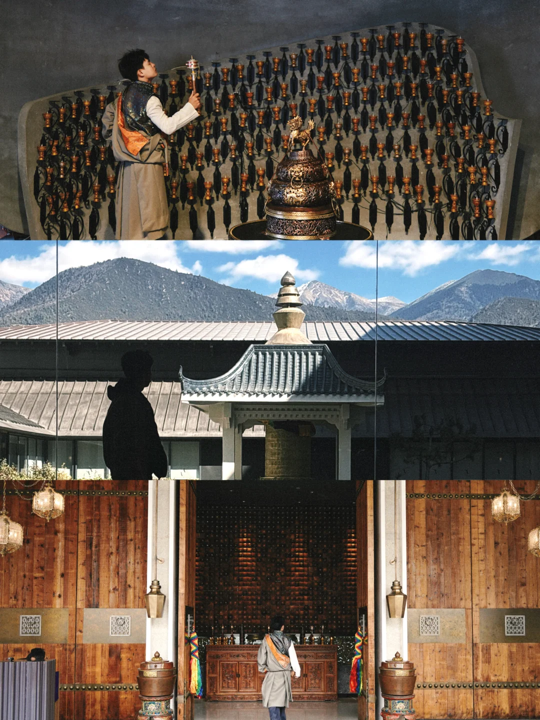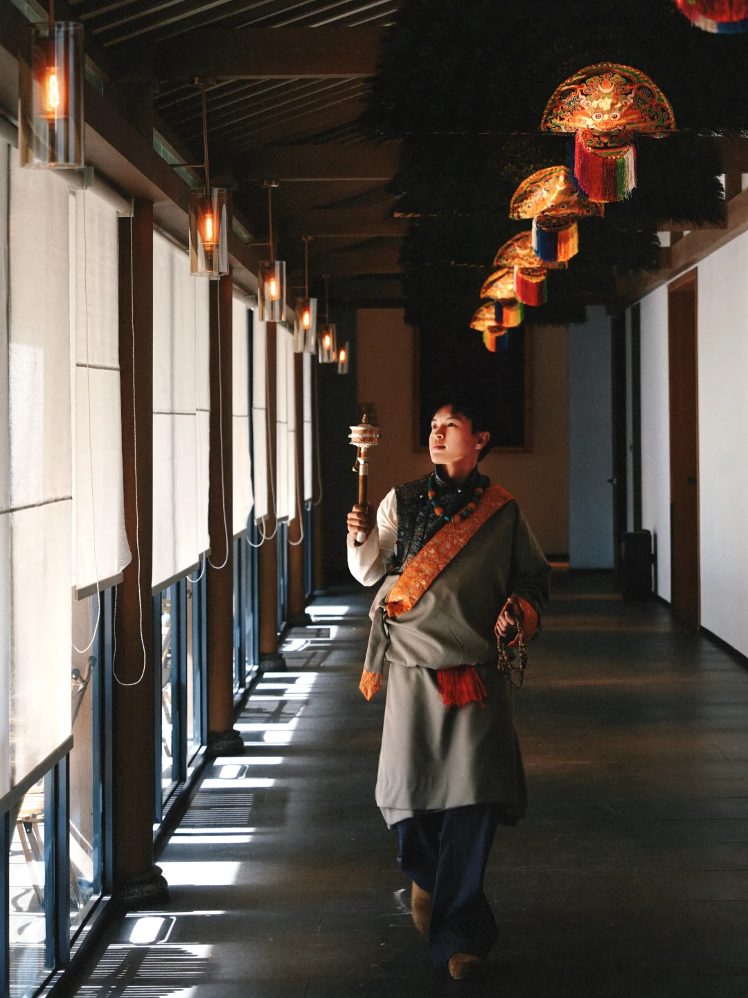 ▪️在1楼免费换上藏服,在庭院晃悠,经幡飘动,雪山做背景,拍一组写真。