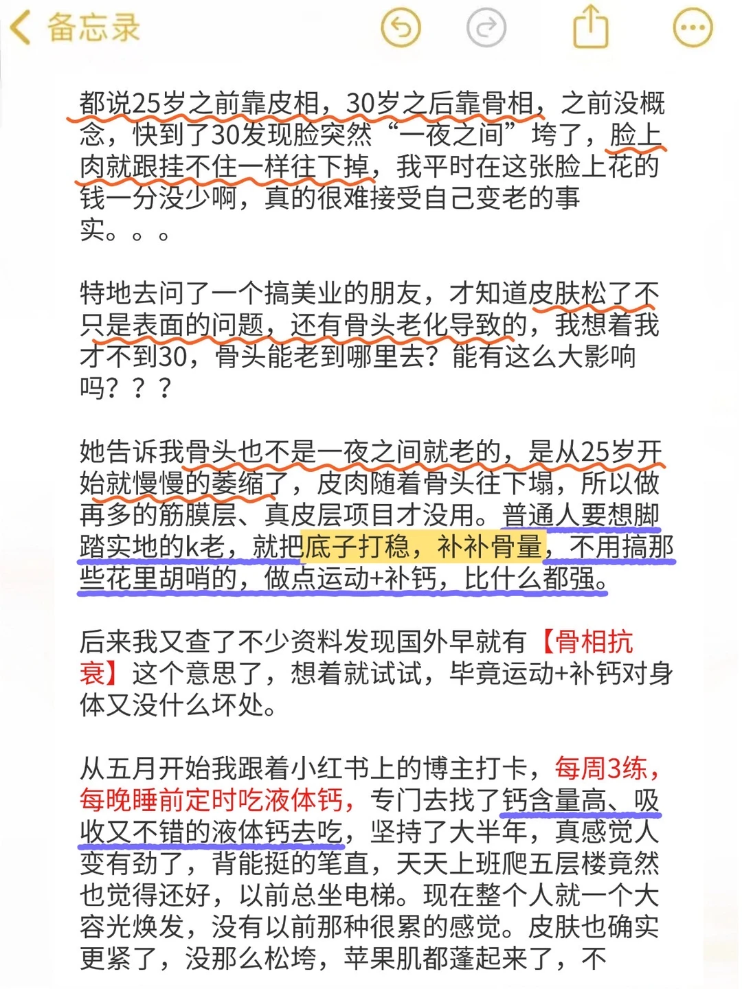 后来我又查了不少资料发现国外早就有【骨相抗衰】这个意思了,想着就试试,毕竟运动+补钙对身体又没什么坏处。