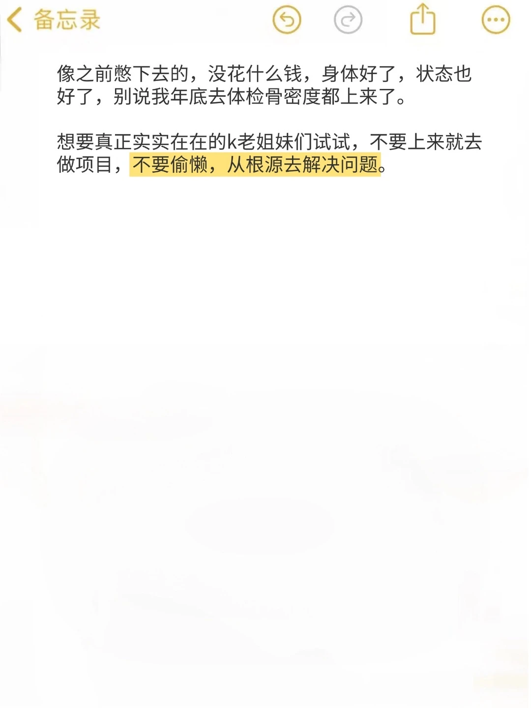 她告诉我骨头也不是一夜之间就老的,是从25岁开始就慢慢的萎缩了,皮肉随着骨头往下塌,所以做再多的筋膜层、真皮层项目才没用。普通人要想脚踏实地的k老,就把底子打稳,补补骨量,不用搞那些花里胡哨的,做点运动+补钙,比什么都强。