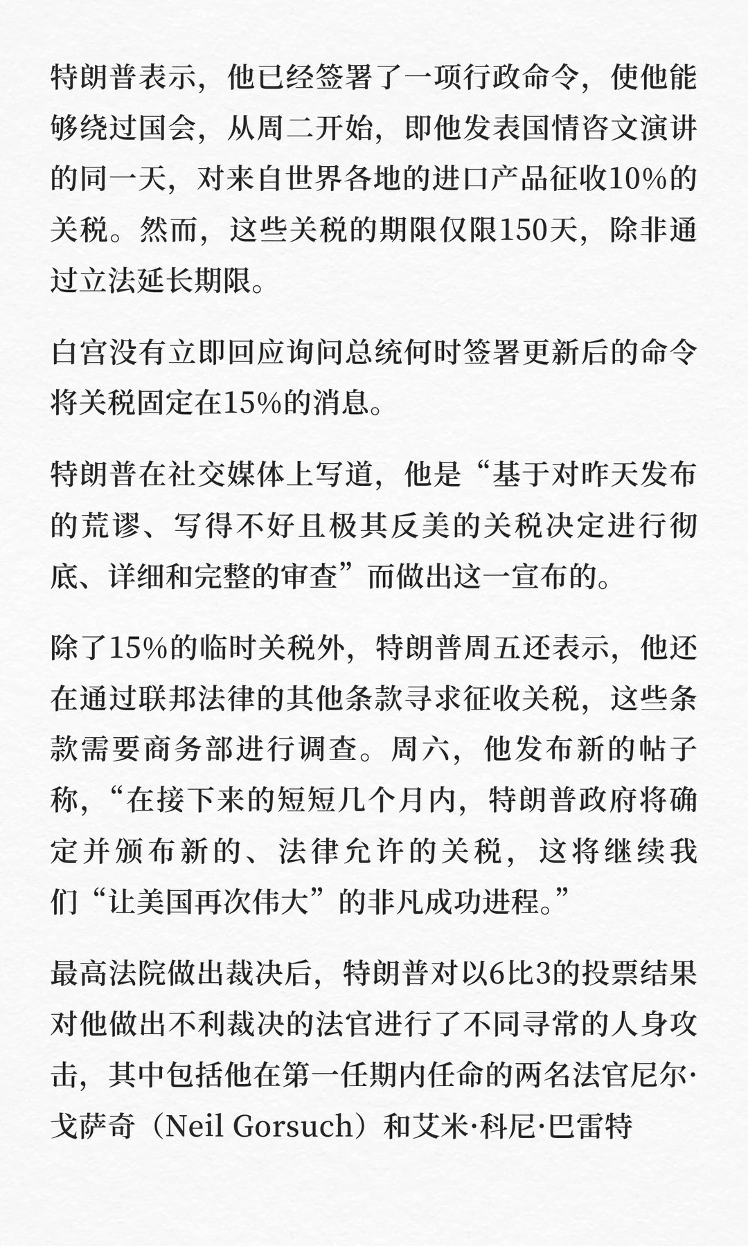 不到24小时,特朗普15%全球关税落地!美国必须给中国一个说法美最高法院判关