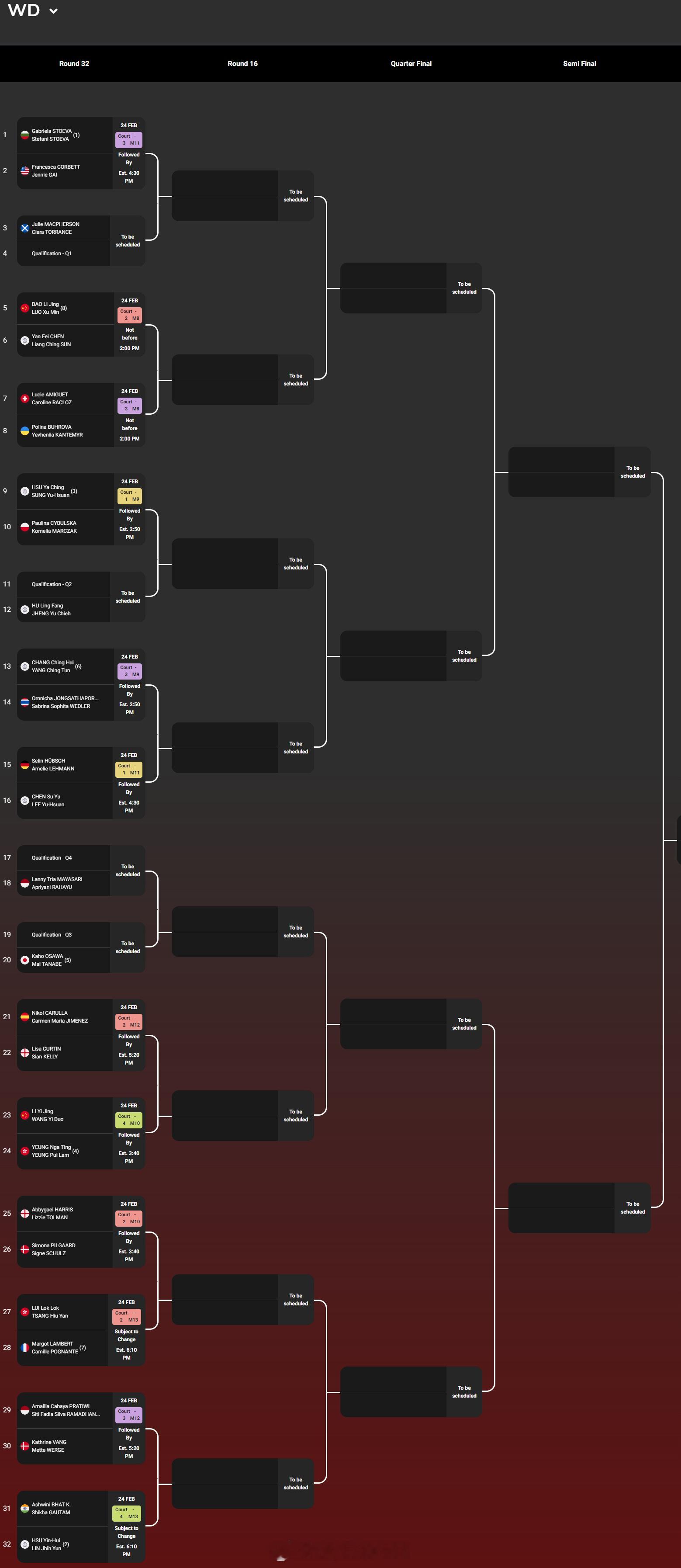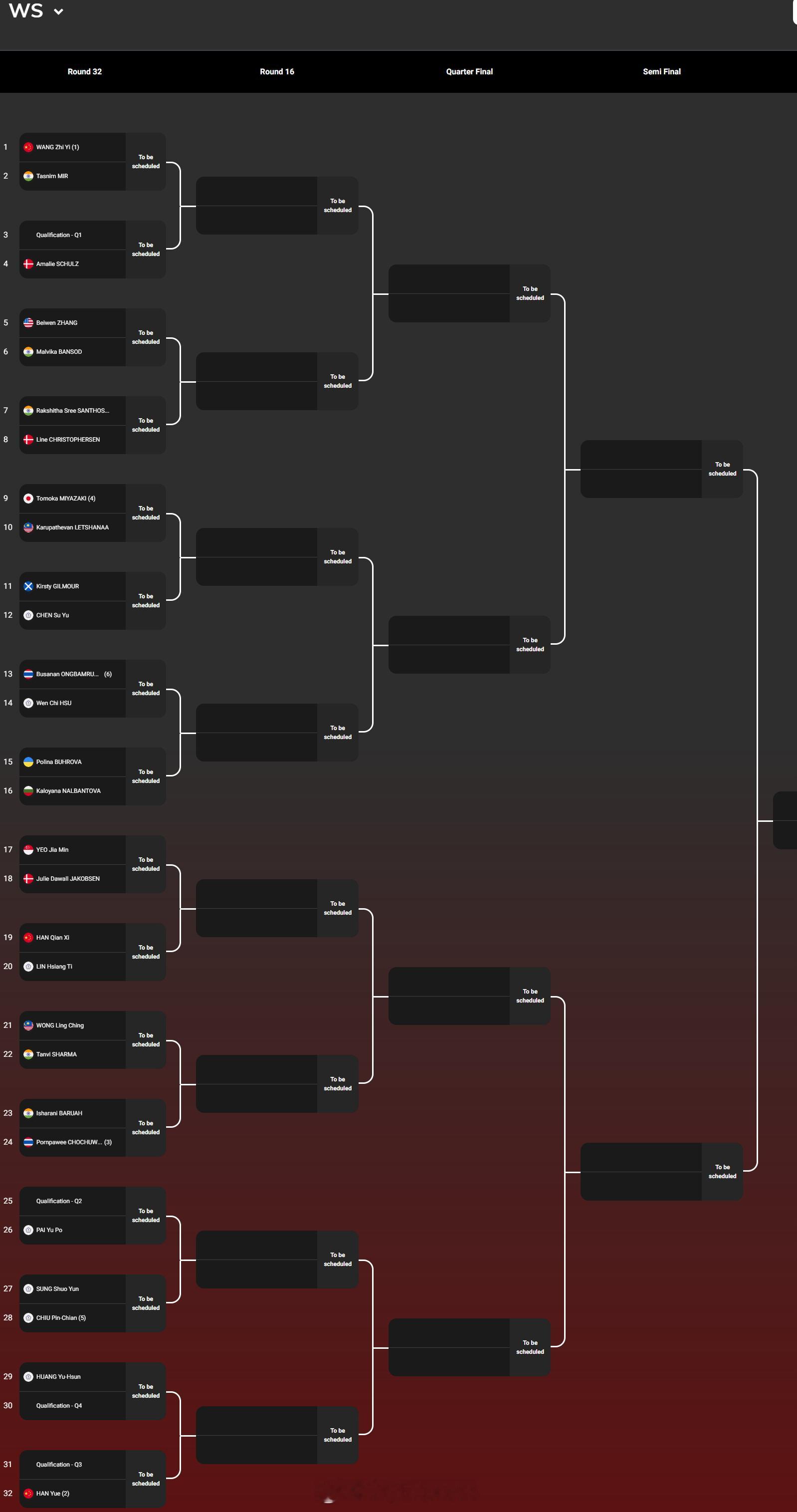 【2026德国羽毛球公开赛签表】2026年德国羽毛球公开赛羽联超级赛 2月24-3月1日,总奖金额为25万美元的2026世界羽联超级300德国公开赛将在米尔海姆举行,国羽参赛名单如下,正赛签表见图:男单:李诗沣、翁泓阳、陆光祖女单:王祉怡、韩悦、韩千禧男双:梁伟铿/王昶、陈柏阳/刘毅女双:鲍骊婧/罗徐敏、李怡婧/王漪朵混双:郭新娃/陈芳卉、程星/张驰