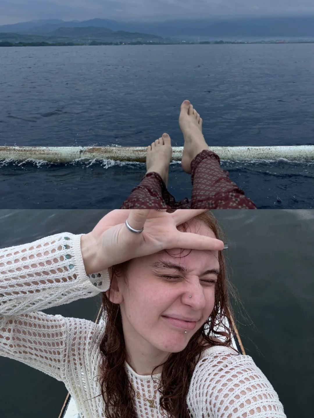 我们当时就可以下去看海豚🐬 我两次在水里看到了一大堆海豚游过去!!!我的天呐!而且我不会游泳的情况下真的很勇敢的下去了 ,我们所有人还被水母咬了🪼(问题不大)