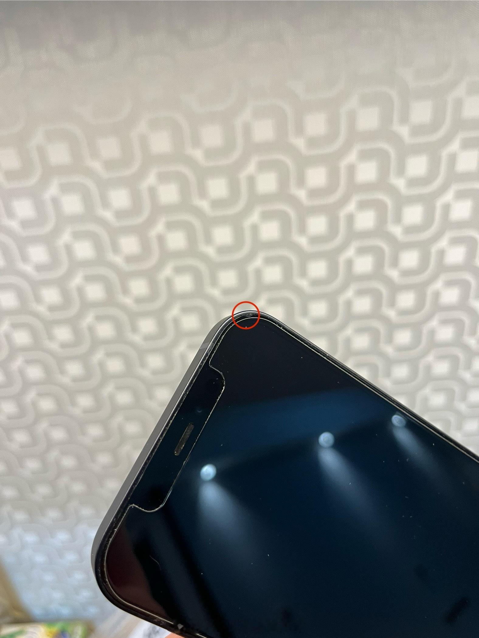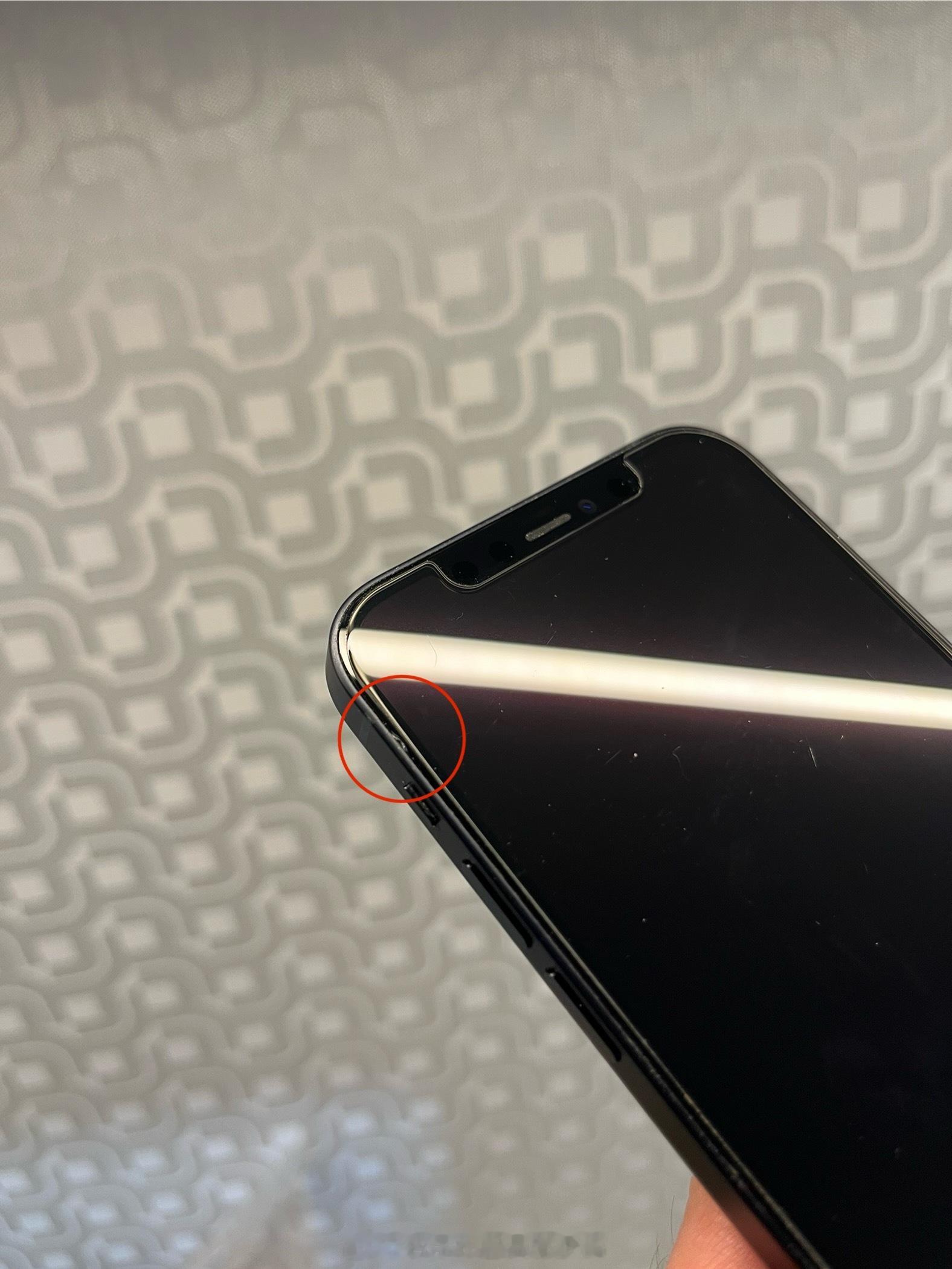 随缘出一台自用国行iPhone 12。黑色,128GB存储空间,电池健康度73%,常年贴膜套壳使用。无拆修,未更换过电池及其他配件。前几年拍摄视频使用的机器,现在闲置了。使用痕迹稍微有一些,边框底部和镜头圈有轻微掉漆。屏幕面板边缘有两处碎角(见图中红圈),并非从边框跌落导致碎裂,而是不慎正面被硬物挤压导致,这是刚开始使用的前半年就出现的情况,没有因此扩大裂痕或出现大面积损坏,自用近5年并没有太多影响。有兴趣要个备用机的话欢迎联系我,交个朋友
