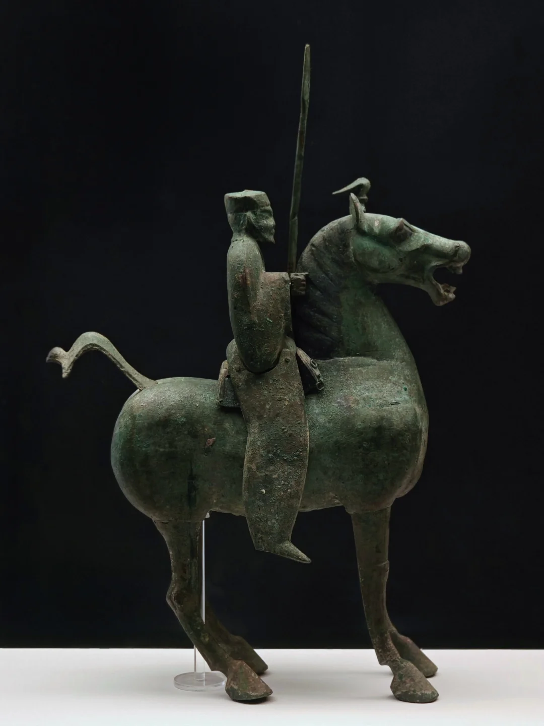和马踏飞燕一起出土于武威市雷台汉墓,是铜车马仪仗俑队的前导车,造型精准。同时展出两件铜车马,这三件同属于38匹铜马、14辆战车、45件人物俑的大型仪仗队伍(迄今为止发现数量蕞多,规模蕞宏伟的汉代车马仪仗铜俑),展现汉代高级将领出行的赫赫威仪。