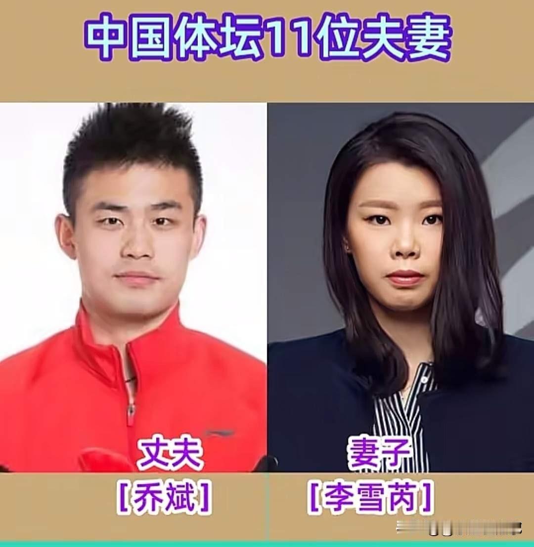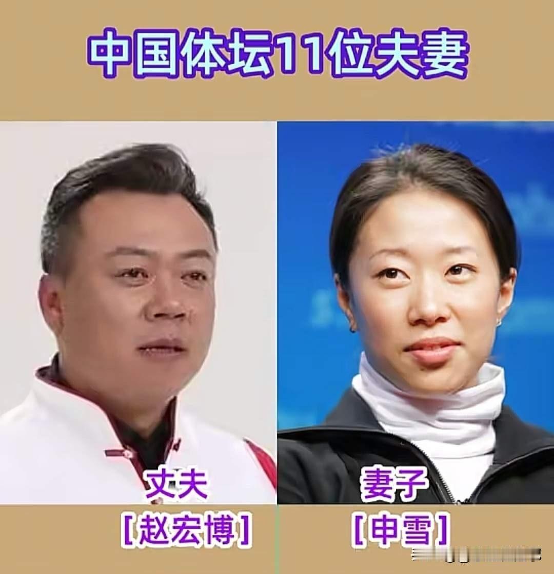 姚明叶莉,体坛恩爱夫妻很般配。 翟一鸣李晓霞,体坛恩爱夫妻很般配。 陈一冰单竞缇,体坛恩爱夫妻很般配。 赵宏博申雪,体坛恩爱夫妻很般配。 吴冠希张常宁,体坛恩爱夫妻很般配。 选择一个爱人结婚,共度一生,始于颜值,陷于才华,终于人品。一开始看到这张脸很喜欢,慢慢的有了好感,后来相处过程中对方的才华也会让他们散发出迷人的光彩,最后能够走进婚姻还是有过硬的人品被对方认可。 这几对体坛夫妻,他们都是同行,在相处的过程中也慢慢知道了对方的为人处世能力和人品,最终携手走进婚姻,恩爱多年依旧甜蜜。 像赵宏博和申雪两人都是花滑运动员,这个职业需要能吃苦耐劳,并且自律性也要很高,两人还是搭档,都是世界冠军,能力也很强。 他们的结合不仅是外表登对男帅女美,更要要的是也很有共同话题。退役后两人低调恩爱,是体坛一对模范夫妻。