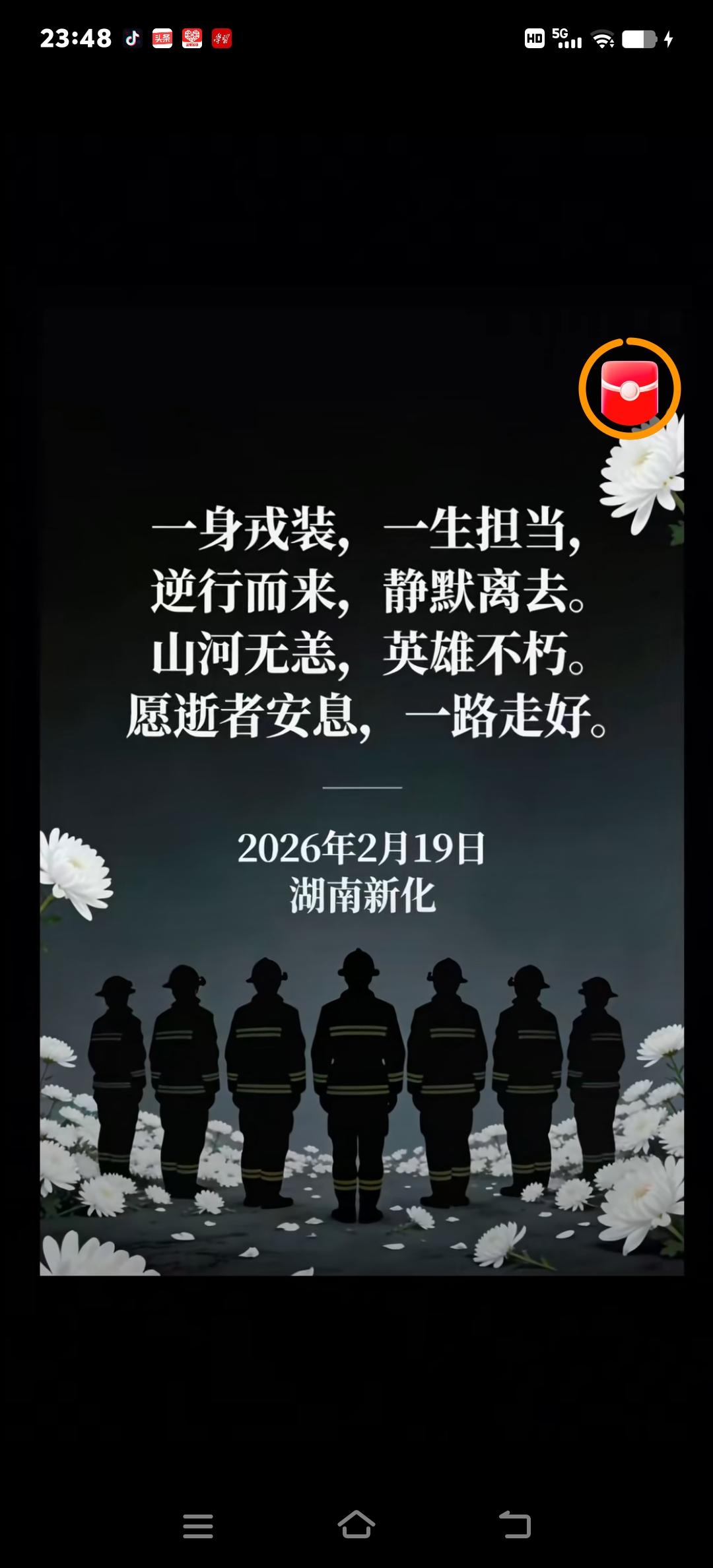 【致敬!2026年2月19日的消防英雄,永远的守护天使】 今天,我们怀着沉重的心情,向六位英勇的消防英雄致以最崇高的敬意。2026年2月19日,在一次紧急灭火行动中,他用生命守护了无数家庭的安全,却永远无法回到我们身边。这是一份最崇高的奉献,也是最令人动容的英雄壮举。 🔥 生命的火焰,点亮了无数人的希望 消防英雄们每天都在与火灾、灾难作战,他们用生命践行着“人民至上,生命第一”的誓言。在那场突如其来的火灾中,他冲在最前线,用自己的生命筑起了一道坚不可摧的防线。这不仅是一次普通的救援,更是一场生命的壮烈战斗。 🌟 英雄无悔,平凡中的伟大 他们或许只是千千万万个普通消防员中的一员,但正是他们的无私奉献,才让我们的城市变得更加安全。每一次冲锋,每一次逆行,都是对生命的尊重和对职责的坚守。今天,我们缅怀的,不仅是一位英雄,更是一份永不熄灭的精神火种。 🙏 向英雄致敬,愿你安息 英雄走了,但他的精神永存。我们要传承他的勇敢与无畏,让更多人知道:在危险面前,消防员始终是我们最坚实的守护者。愿他在天堂安息,愿他的家人坚强,我们会一直记住他的英雄事迹。 💪 让我们一起行动起来 弘扬英雄精神,从自己做起。关注消防安全,学习应急知识,让我们的生活更加安全有序。也希望每个人都能像这位英雄一样,心怀善意,勇于担当。 今天,让我们用最崇高的敬意,向这位为人民献出生命的消防英雄致敬!你们的无畏与奉献,将永远铭刻在我们心中。 一路走好,英雄!我们永远不会忘记你。 消防英雄 致敬英雄 生命守护者