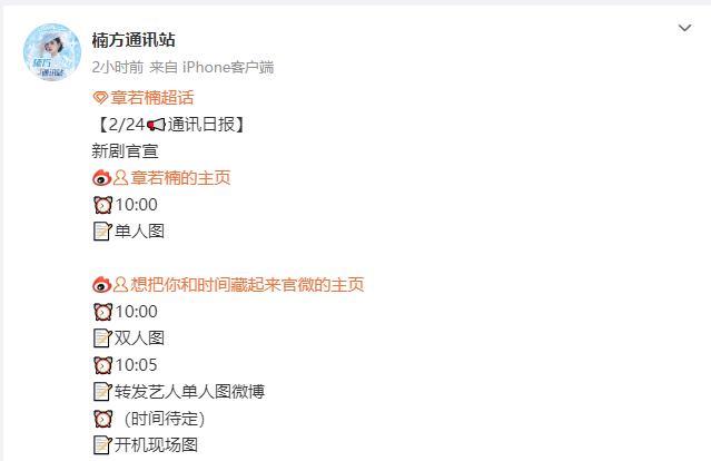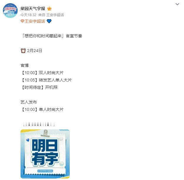 王安宇章若楠新剧官宣节奏 章若楠王安宇主演新剧《想把你和时间藏起来》明日正式要官宣啦。想把你和时间藏起来