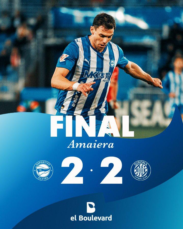 虎扑02月24日讯北京时间2月24日,西甲第25轮阿拉维斯主场对阵赫罗纳。第5分钟,恩里克斯底线横传,博耶推射空门得手,阿拉维斯取得梦幻开局。第31分钟,维特塞尔头球摆渡,瓦纳特推射扳平比分。第73分钟,奥纳希直塞助攻,齐甘科夫破门,赫罗纳反超比分。第89分钟,绝平!博耶接帕拉达助攻头球破门,帮助球队在主场守住平局。最终,双方各拿一分。