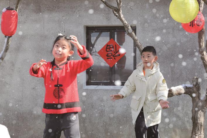 2月20日,在南湖区凤桥镇梅花洲景区内,人造雪景与红梅相映成景,皑皑“白雪”铺陈其间,红梅在枝头傲然绽放,为江南水乡增添了别样的冬日景致,不少游客驻足观赏、拍照留念,在水乡古镇里邂逅一场别致的冬日浪漫。