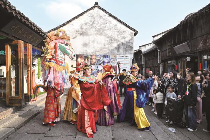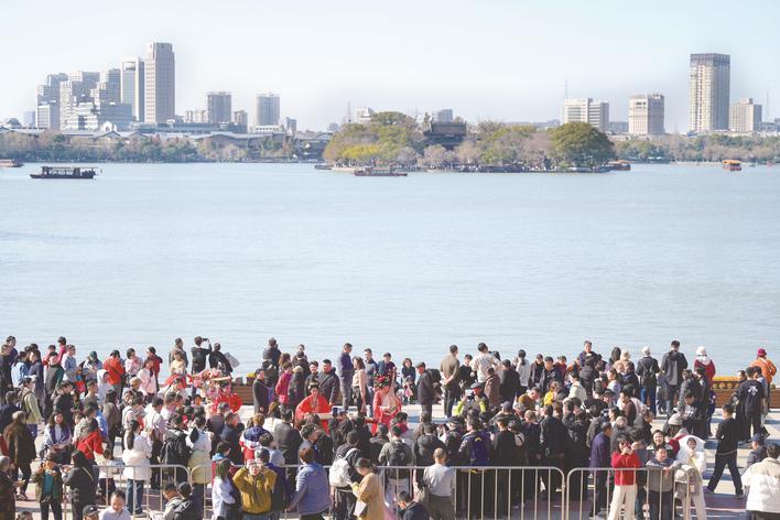 今年春节期间,南湖旅游区、子城遗址公园、乌镇景区等地客流如织,来自五湖四海的游客在红船起航地嘉兴感受“醉江南”的年味。
