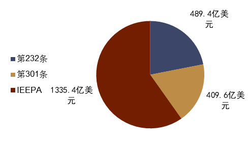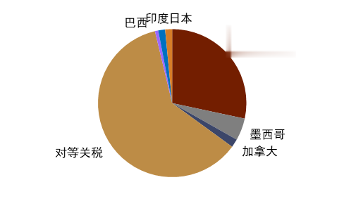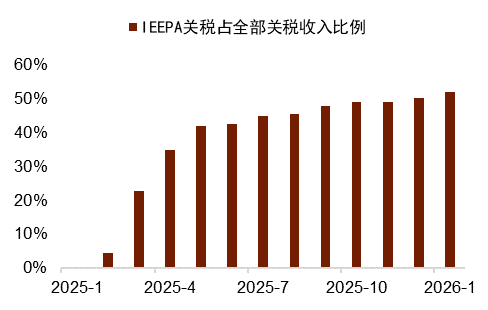 减收方面,我们认为当前的122条关税较难弥补IEEPA关税的损失,后续推进的301条、232条关税亦难以支撑全球各国层面的关税收入。由于此前主要美国贸易伙伴的IEEPA关税水平大多不低于15%,我们认为122条关税收入或难以弥补IEEPA关税收入的损失。据宾夕法尼亚大学沃顿商学院估计[5],截至2026年1月,IEEPA关税贡献了全部关税收入的52%(图表3)。截至2月19日,IEEPA关税的累计收入规模约为1,750亿美元[6],而这部分关税收入可能面临未来的退款压力(图表4)。从具体实践来看,IEEPA关税的主要来源为对等关税,比例约61%(图表5),其他来源还包括对中国的“芬太尼关税”等,其中较大比例的国家所面临的对等关税税率高于15%(图表6)。因此,随着IEEPA关税废除,即使特朗普迅速加征了15%的122条关税,我们认为122条的关税收入或较此前的IEEPA关税收入有较大比例的减少。而目前正在推进的第301条、232条关税则主要针对行业,较难覆盖全球范围内国家层面的关税。从2025财年至今的收入情况来看,第301条和232条产生的关税收入分别为409.6和489.4亿美元,合计仍小于同期IEEPA关税收入(图表7)。因此,我们认为后续第301条、232条款的关税很难完全弥补IEEPA关税收入。