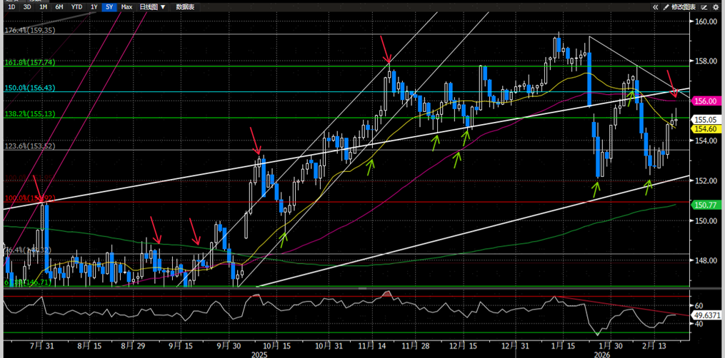 日本央行加息或放缓、日元再度垫底过去一周日元相较美元贬值约1.52%(图表14),在G10与亚洲货币中排名为最后一名。贬值明显的原因主要来自于低于预期的GDP数据所导致的日本央行加息预期的退坡,上周一日本公布了25年10-12月GDP的环比折年的数据,仅为+0.2%的增长,远低于市场预期的1.6%,此前市场预期日本央行或在3月实施加息,但是受该数据影响相关加息预期有所退坡。期货头寸方面,截至上周二对冲基金对日元的净头寸发生了明显的减少(图表15),我们认为在目前的水平下“日元净空头积累过多,套息交易逆转,带来日元大幅贬值,冲击资本市场”的可能性并不高。本周日本政府将在2月25日之前公布日本央行2名审议委员的提名[16],相关提名对今后的货币政策的方向或带有明显的指向作用。“任命1名鸽派、1名鹰派人士”的情景下,该人事安排相对平衡,对现有的资本市场影响或有限。但是“任命2名鸽派人士”的情景,我们认为则会给资本市场带去明显影响,日元汇率或发生明显的贬值,目前美日汇率在155附近,受该消息影响,美日汇率存在快速上行至158的可能性。同时,由于目前日本政府对日元贬值的容忍度较低,我们认为当美日汇率触及158-160附近,则会在触发日本当局的外汇干预的可能性。参考过去的外汇干预的经验,每次外汇干预或能在数个交易日内带来日元约3%的升值,每次干预规模约为5~10万亿日元(约315~630亿美元)。我们认为本周美日汇率区间或在153-159,投资者需要留意汇率市场波动以及日本当局实施外汇干预的风险。