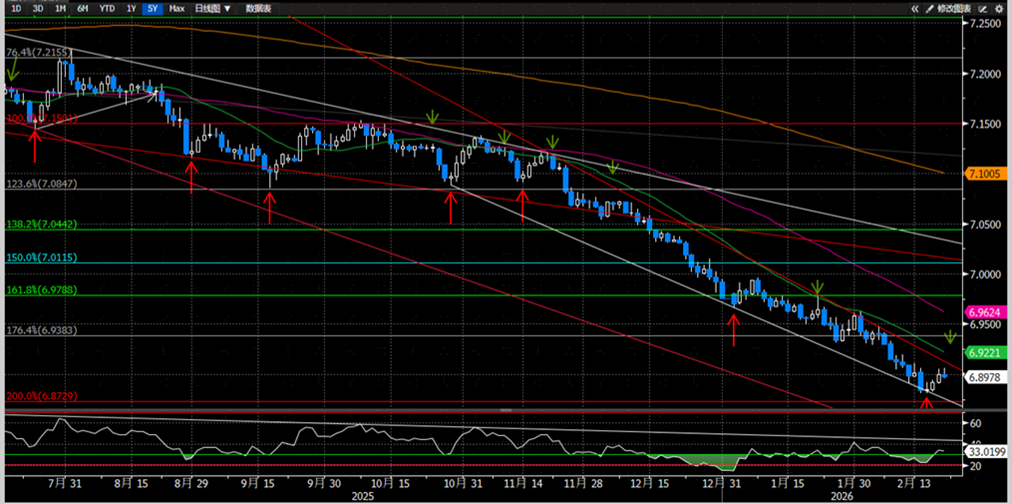 图表16:美元兑离岸人民币(日线)走势技术分析